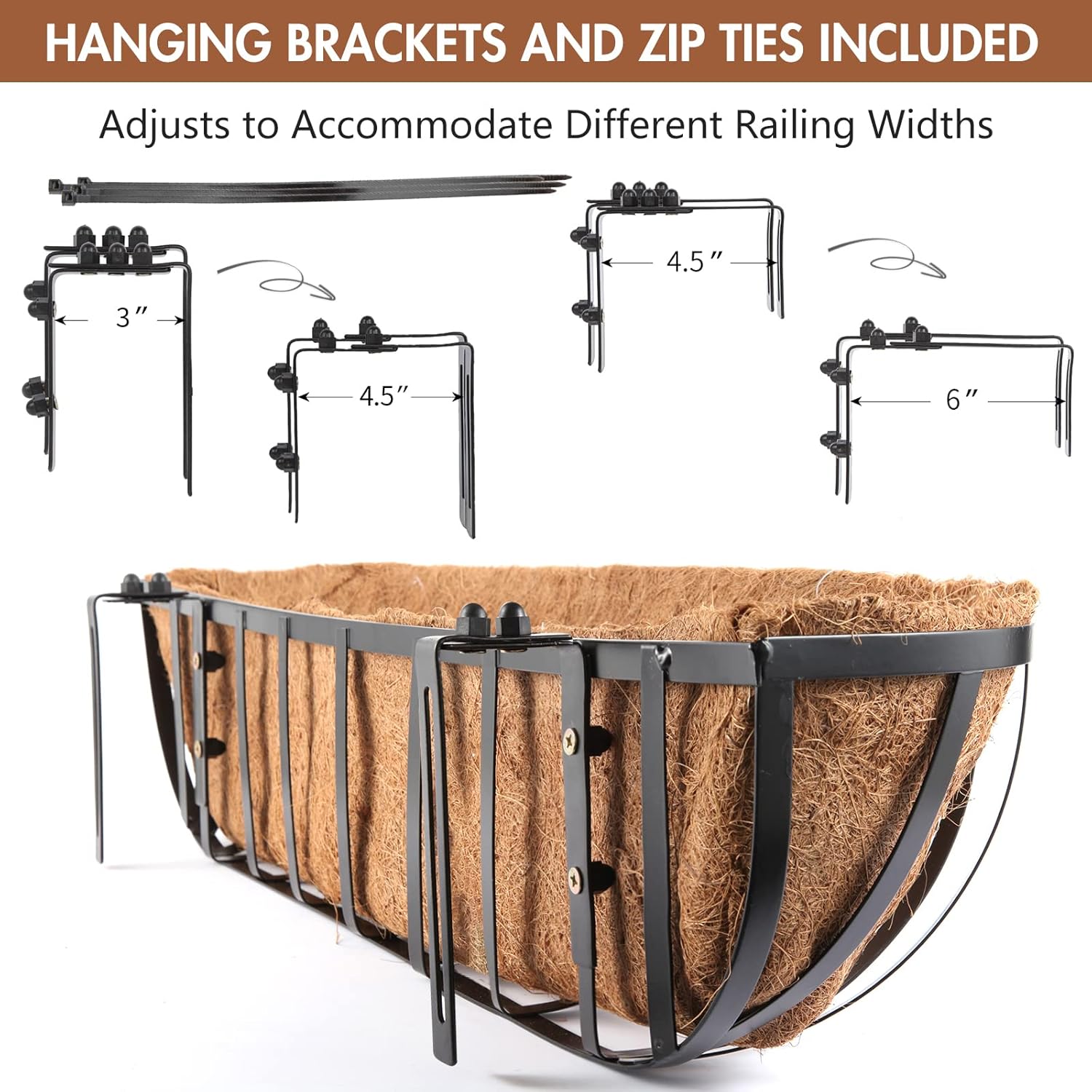 - EASY ASSEMBLY: The included hanging adjustable brackets are easy to assemble and fit any railings measuring 3 to 6" wide; pre-drilled tabs for screwing directly to the wall or window sill.