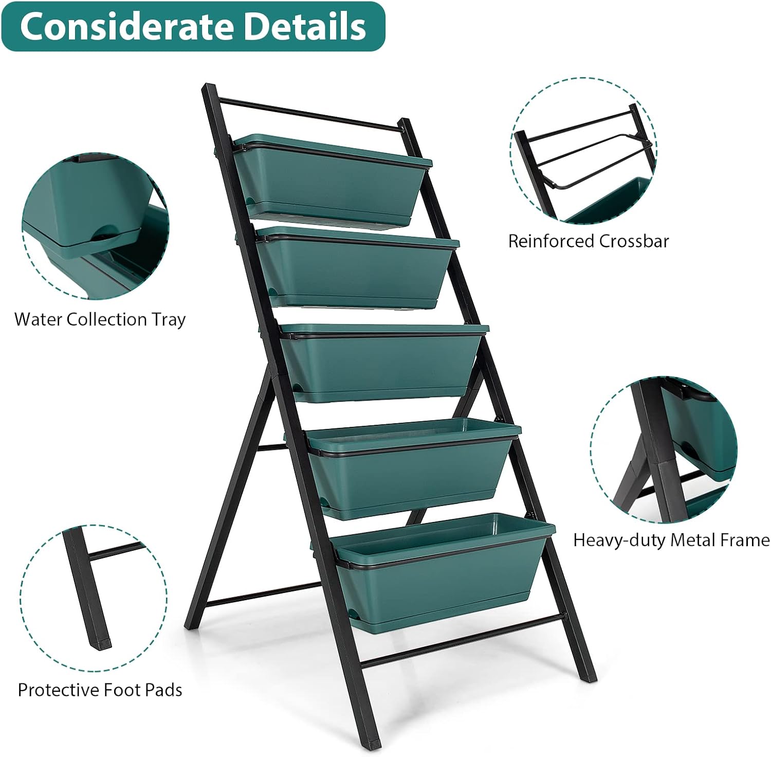 Giantex Vertical Planter Raised Bed, Elevated Garden Beds with Water Drainage Hole, Freestanding 5 Container Boxes for Herb Vegetables Flowers Growing, Outdoor Indoor Patio Balcony (Green, 1)