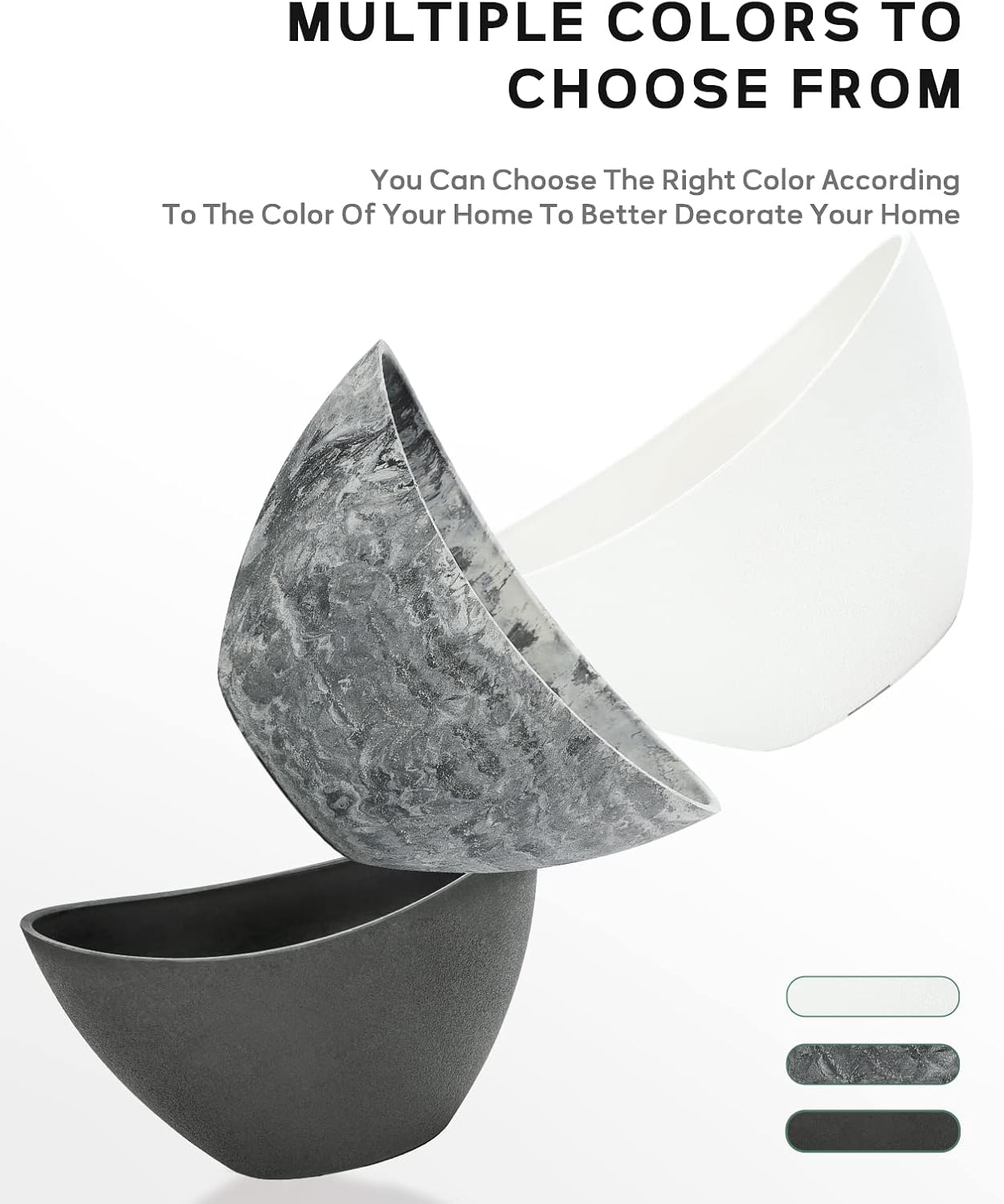 - 【Unique Design】 Unlike other plant pots, it is oval-shaped and has a unique appearance design like a gold ingot, even without plants it can still decorate your home.These planters are the perfect decoration for home living room, bedroom, front porch, balcony, desk, patio, office and garden, etc.(Note: There may be slight color differences)
