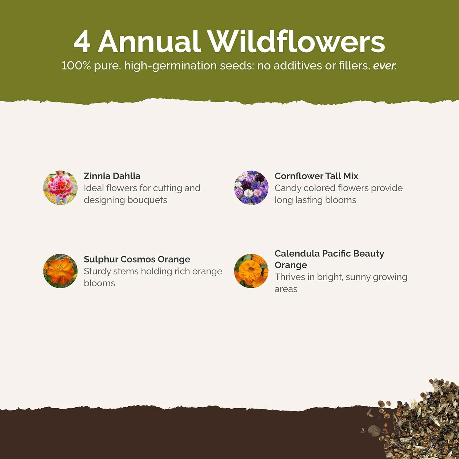 - 100% Pure, Non-GMO Seeds - No fillers, favorites only! Includes 4 easy-to-grow species: Zinnia California Giants, Cornflower Tall Blue, Cosmos Bright Lights, Calendula Pacific Beauty Mix