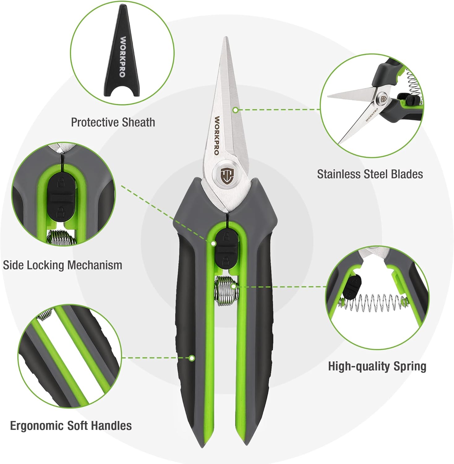 WORKPRO Garden Pruning Shears 2 Pack, 8" Bypass Pruning Shears and 6.25" Straight Garden Scissors, Premium Plant Shears, Garden Clippers Hand Tools for Cutting Flowers, Trimming Plants, Picking Fruits