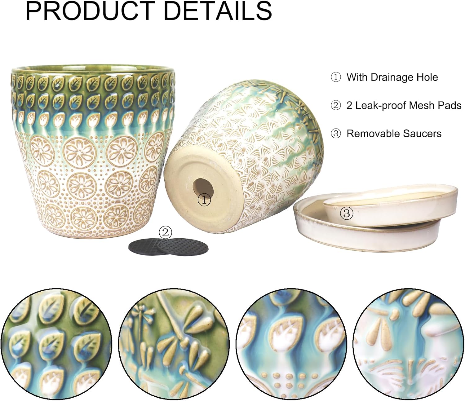 6 Inch + 5 Inch Ceramic Planter with Drainage Hole and Saucer for Plants, Indoor-Outdoor Round Succulent Orchid Garden Flower Pot - Set of 2