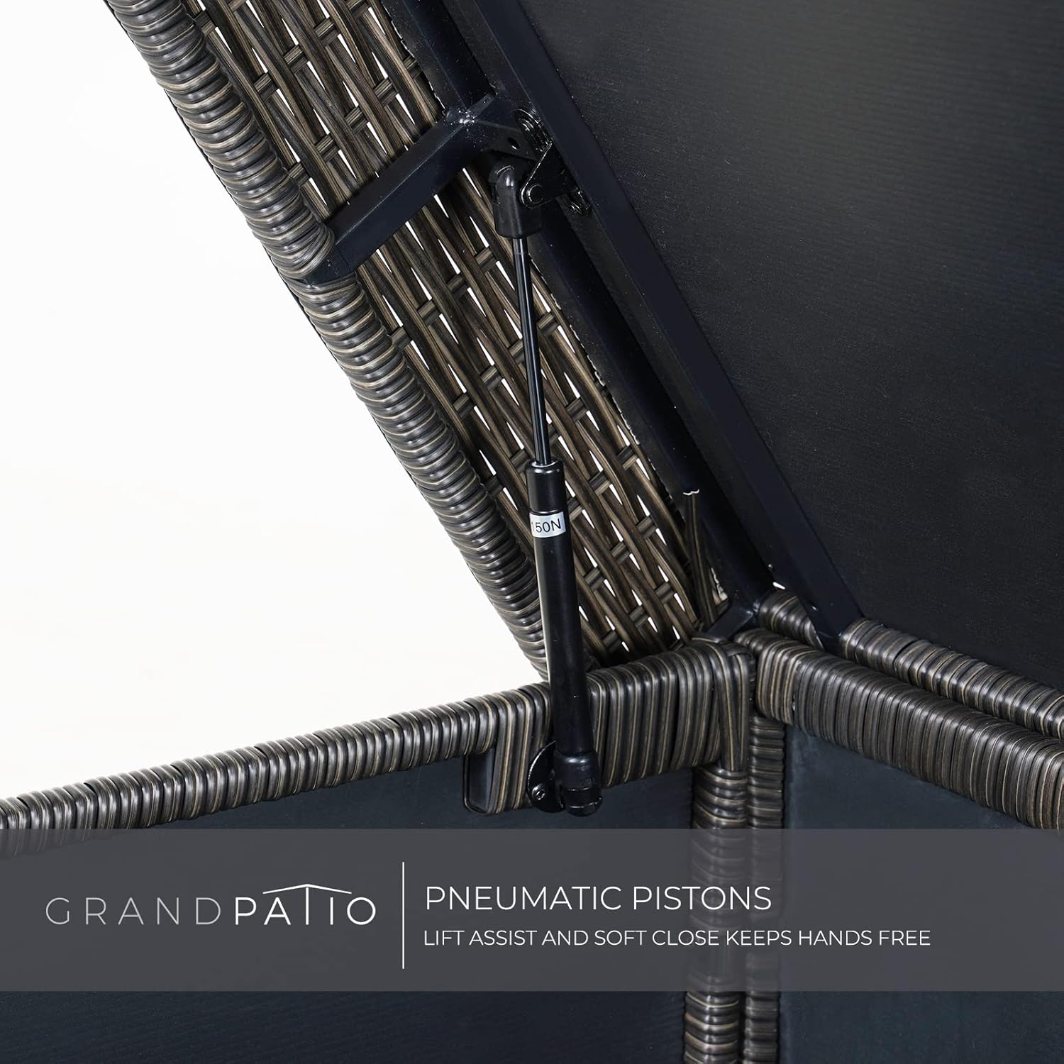 Grand patio 170 Gallon Storage Box, Dark Brown PE Wicker, Minimalist Style, Water Resistant, Flip Top, Smooth Wheels, for Patio Furniture Cushions, Garden Tools, Pool Accessories