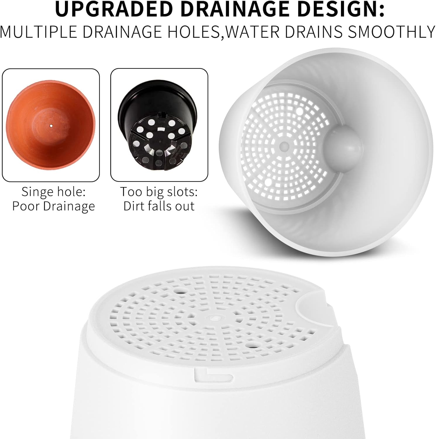 GARDIFE Plant Pots 7/6.5/6/5.5/5 Inch Self Watering Planters with Drainage Hole, Plastic Flower Pots, Nursery Planting Pot for All House Plants, African Violet, Flowers, and Cactus,White