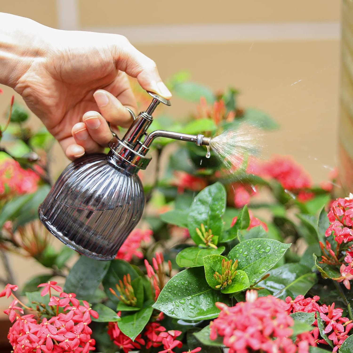 - 🌱【Versatile Use】- This vintage style plant spritzer mister bottle can be used as kitchen cleaner spray, window cleaner spray, pet cooling spray, barber spray, travel accessories, office decor and balcony decor. These glass water bottles are perfect garden tools.