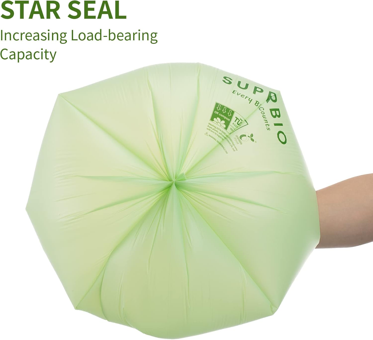 - Product Feature: SUPERBIO bags are guaranteed to remain strong, sturdy and tear proof when used in accordance with the recommended usage directions. Patented processing technologies. Handle tie and star sealed reinforced bottom to securely hold even the heavy load