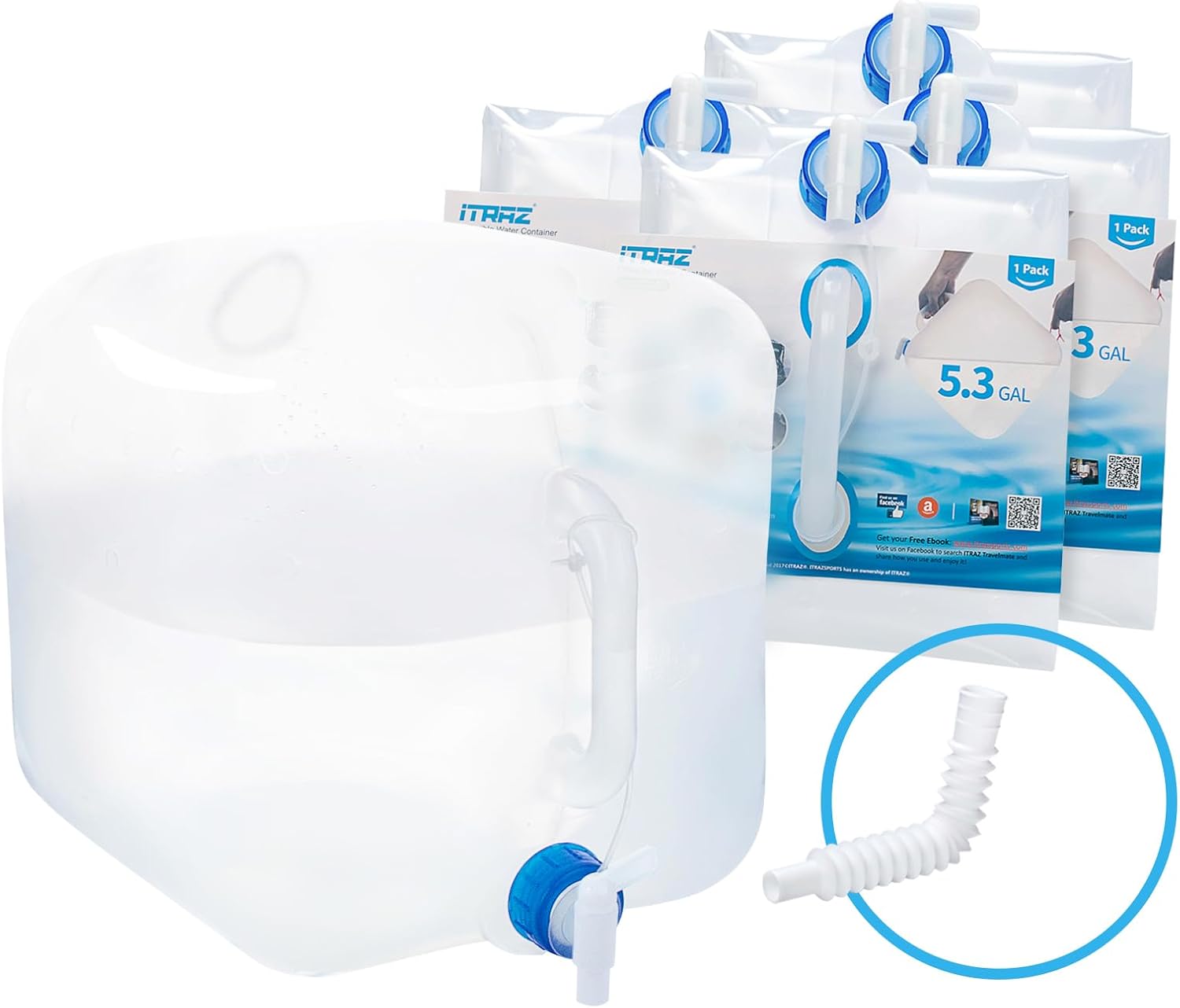- 30-DAY SATISFACTION GUARANTEE: If your ITRAZ collapsible water jug is defective or you are not satisfied for any reason within 30 days, we will offer a replacement! THANK YOU BONUS: ITRAZ includes a 39-page eBook, "How to Prepare for Camping & Emergency Survival," to help you and your family stay prepared.