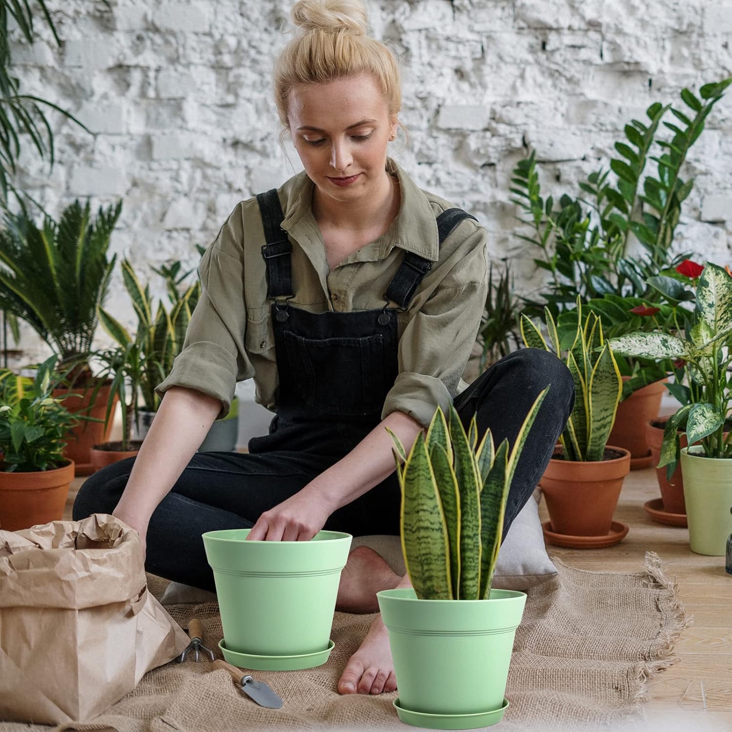 - 【Most repotting for Indoor Plants】 This 6inch Plant pot set includes 16 pieces planting pots and 16 pieces of the matching trays are great for repotting plants, you can grow a variety of plants indoor or outdoors, such as orchid, snake plants, mint, parlor palm, devil’s ivy, cactus, aloe