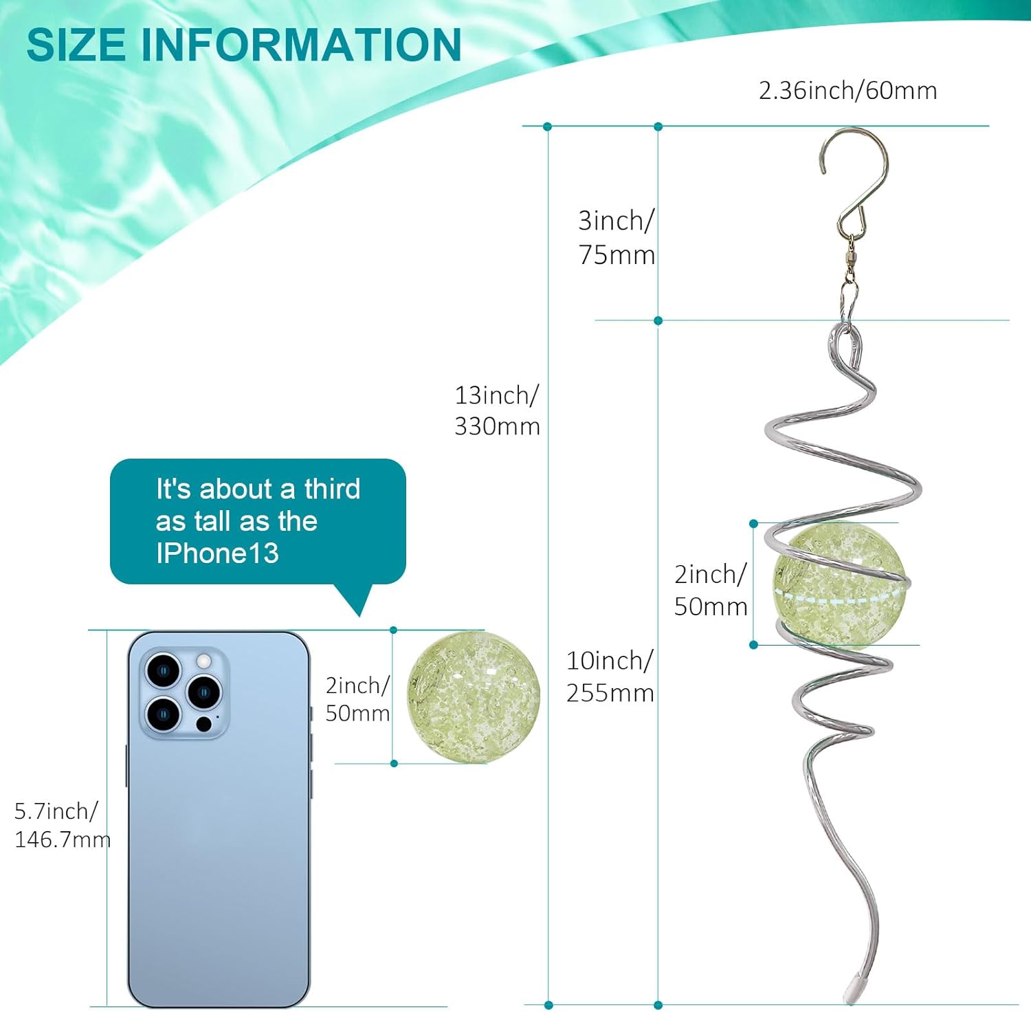 - 【 High Quality Spiral Tail Decor 】This stainless steel wind spinner spiral tail is made of 304 stainless steel wire, the colored ball is made of pure K9 crystal glass material. After exposure to sunlight during the day, the glow orb glows in the dark, it is not intended to replace standard lighting. Exceptionally resistant to inclement weather, the ball of the spiral tail will not fade even in direct sunlight. This decorative spiral wind-spinner to match any decor.