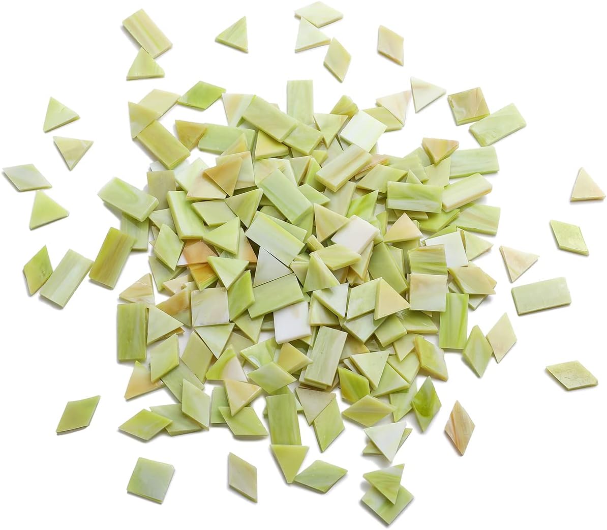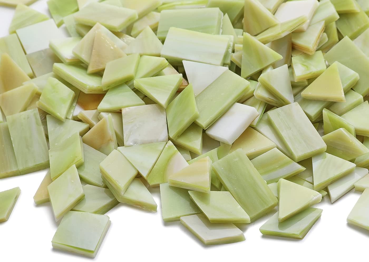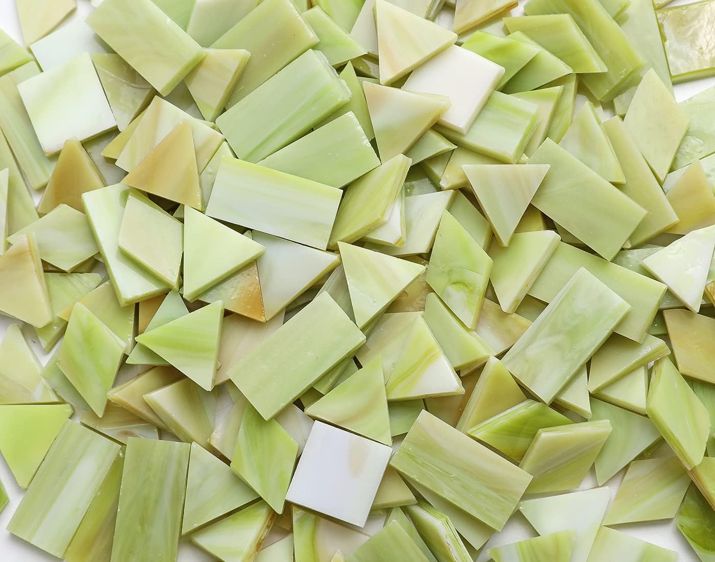 Lanyani Glass Mosaic Tiles for Art Crafts, 4 Shapes Mixed Tiffany Stained Glass Pieces, 200 Pieces, Square/Rectangle/Diamond/Triangle,New Leaf Green