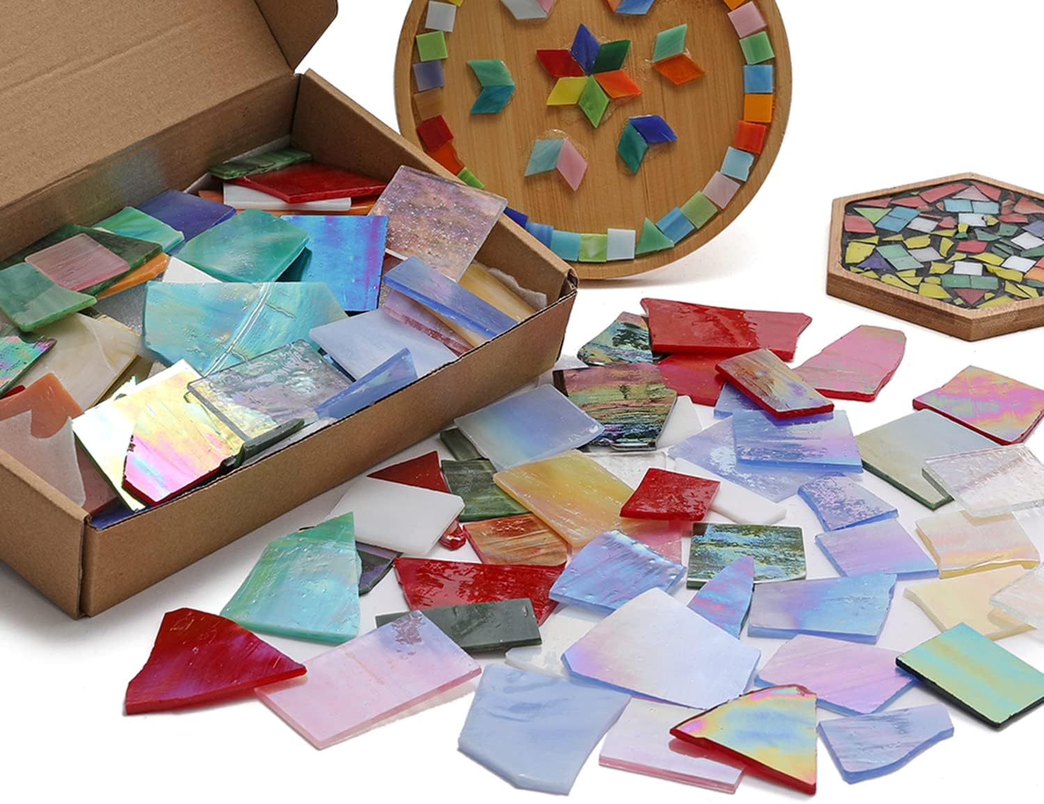 - Perfect for Indoors and Outdoors - These iridescent broken stained glass mosaic tiles for crafts are great for indoor and outdoor projects.Imagine the rainbow stained glass scrap as stunning backdrops on your mosaic fountains, planters, and home!