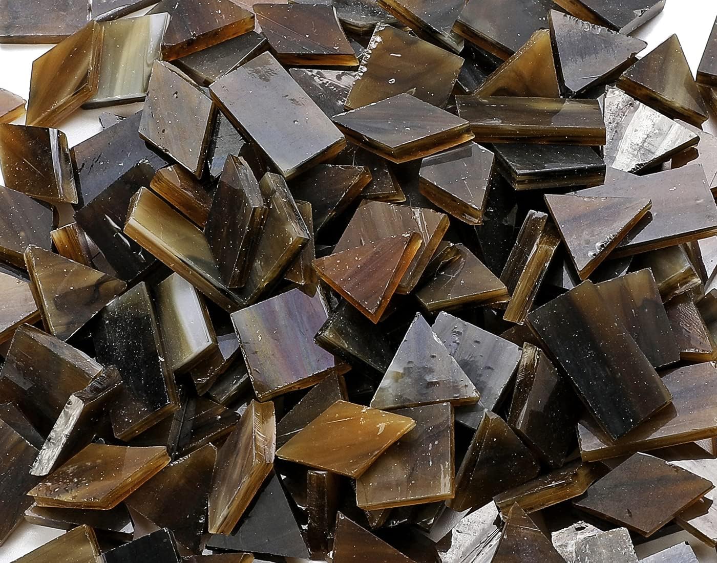 Lanyani Glass Mosaic Tiles for Art Crafts, 4 Shapes Mixed Tiffany Stained Glass Pieces, 200 Pieces, Square/Rectangle/Diamond/Triangle,Coffee