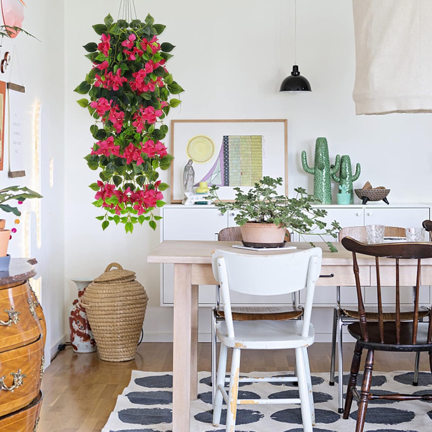 Fake Hanging Flowers Plants Bougainvillea Artificial,UV Resistant Faux Silk Flower Fabric Vine for Indoor Outdoor Garden Porch Eave Fence Wedding Wall Spring Summer Decor