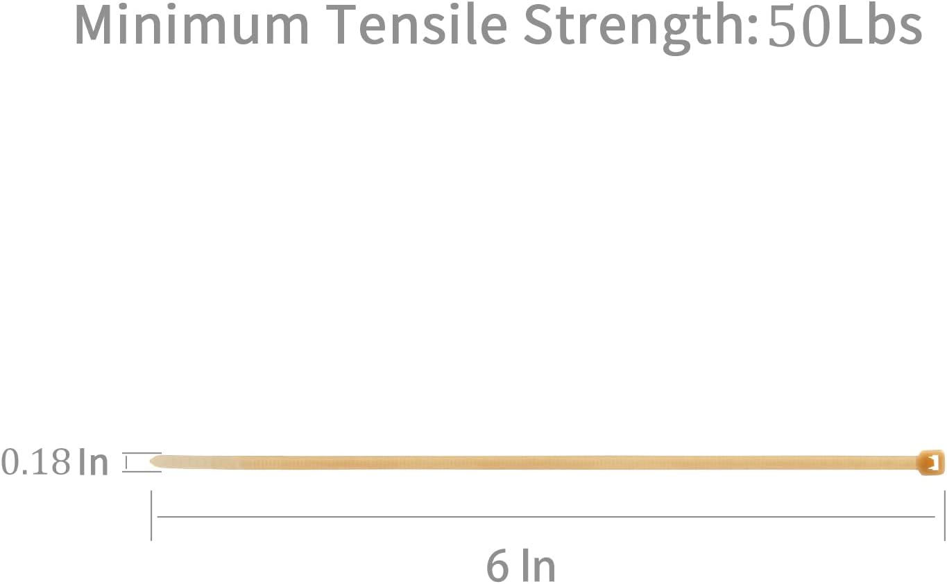 XINGO 100PCS Cable Zip Ties Heavy Duty, Premium Nylon Plastic Wire Ties with 50 Pounds Tensile Strength, Self-Locking Black Nylon Zip Ties for Indoor and Outdoor (6 inch, Gold)