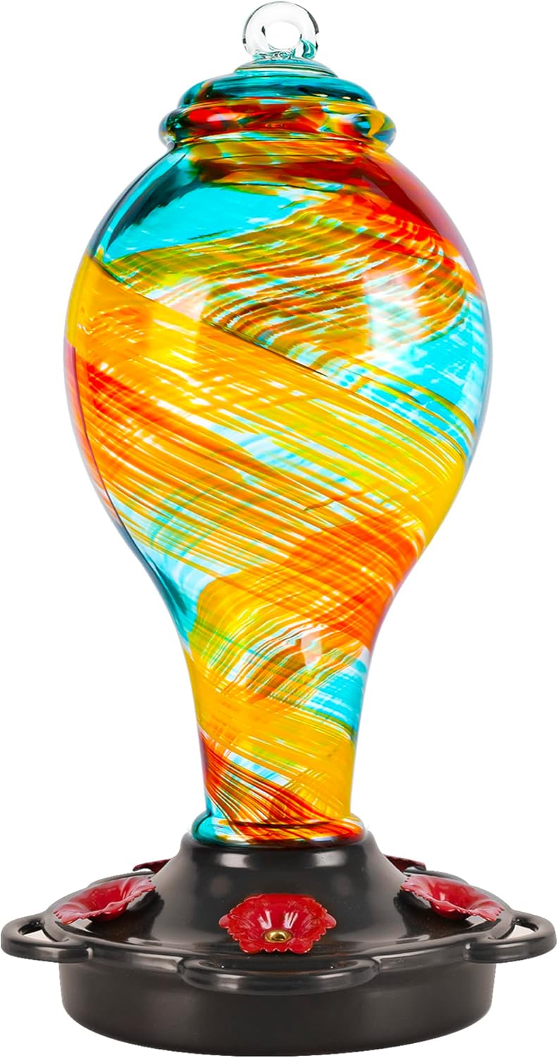 - HAND BLOWN GLASS ART: Each bottle is handcrafted from recycled glass by experienced glassblowers. The curves and texture are convinced by artists. Each feeder is truly one of a kind.
