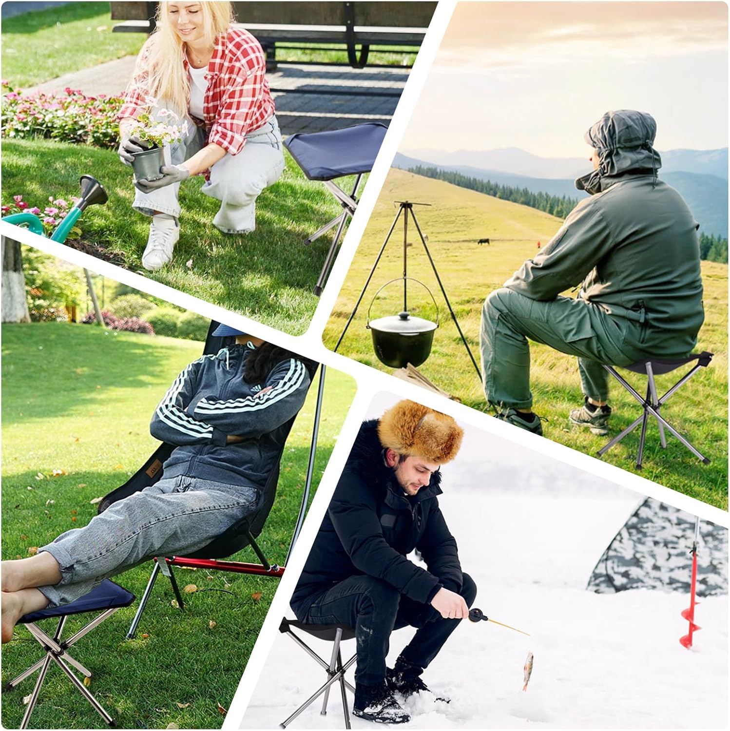 - MULTIFUNCTIONAL SMALL FOLDING STOOL: When you have to stand in line for any length of time. Or the demands of work that always requires your body to stay low. Or want to take a break when you're on a hike. Or fishing, garden work, and more. You all need a stool sitting. This portable seats for adults does just that.