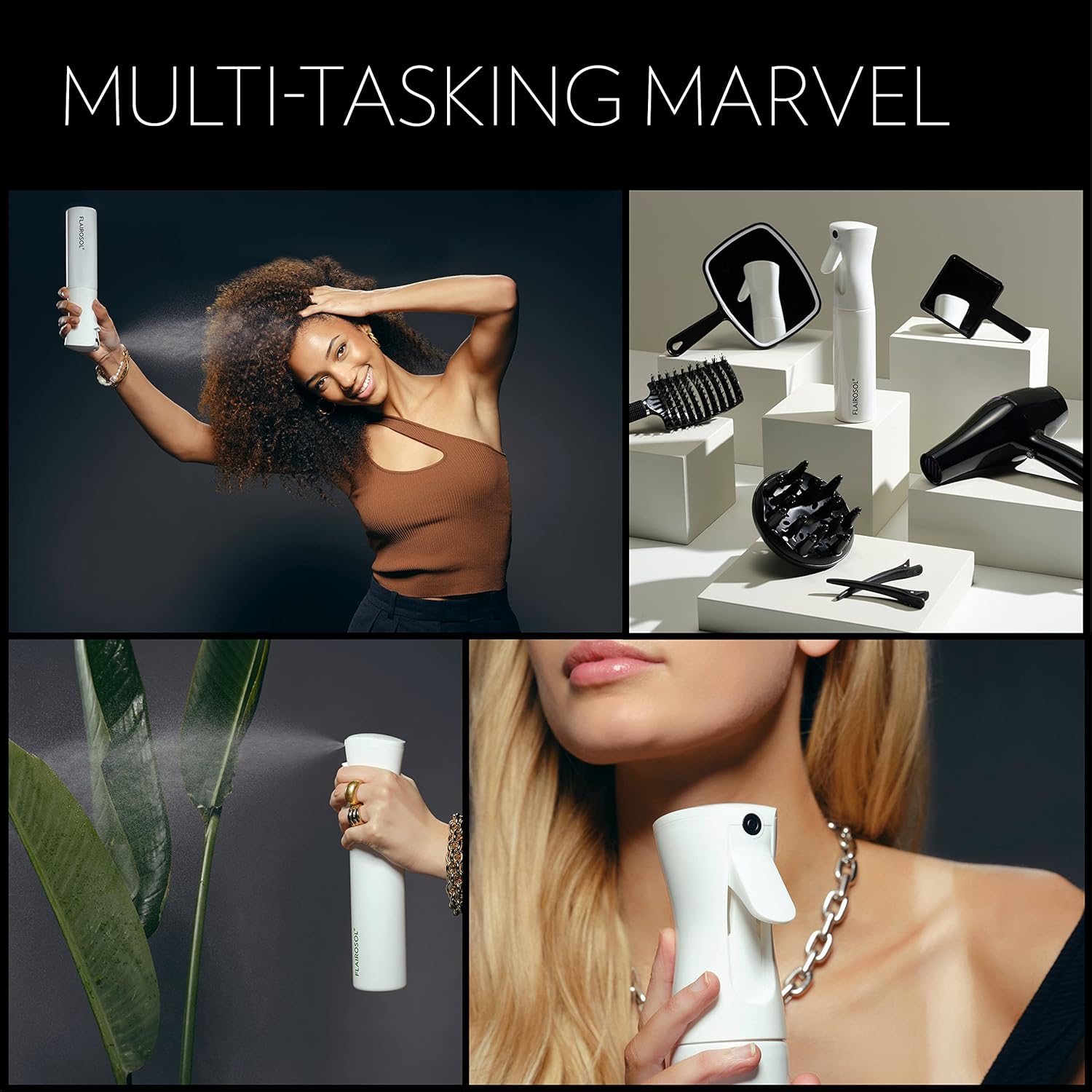 - MULTI-TASKING MARVEL: Countless uses in and out of the home. The mister spray bottle is ideal for professional salon use or your everyday hair and body care routine. Plus, this fine continuous mist spray bottle is great for home cleaning, disinfecting, pet grooming, plant care, car care, arts & crafts, and much more!