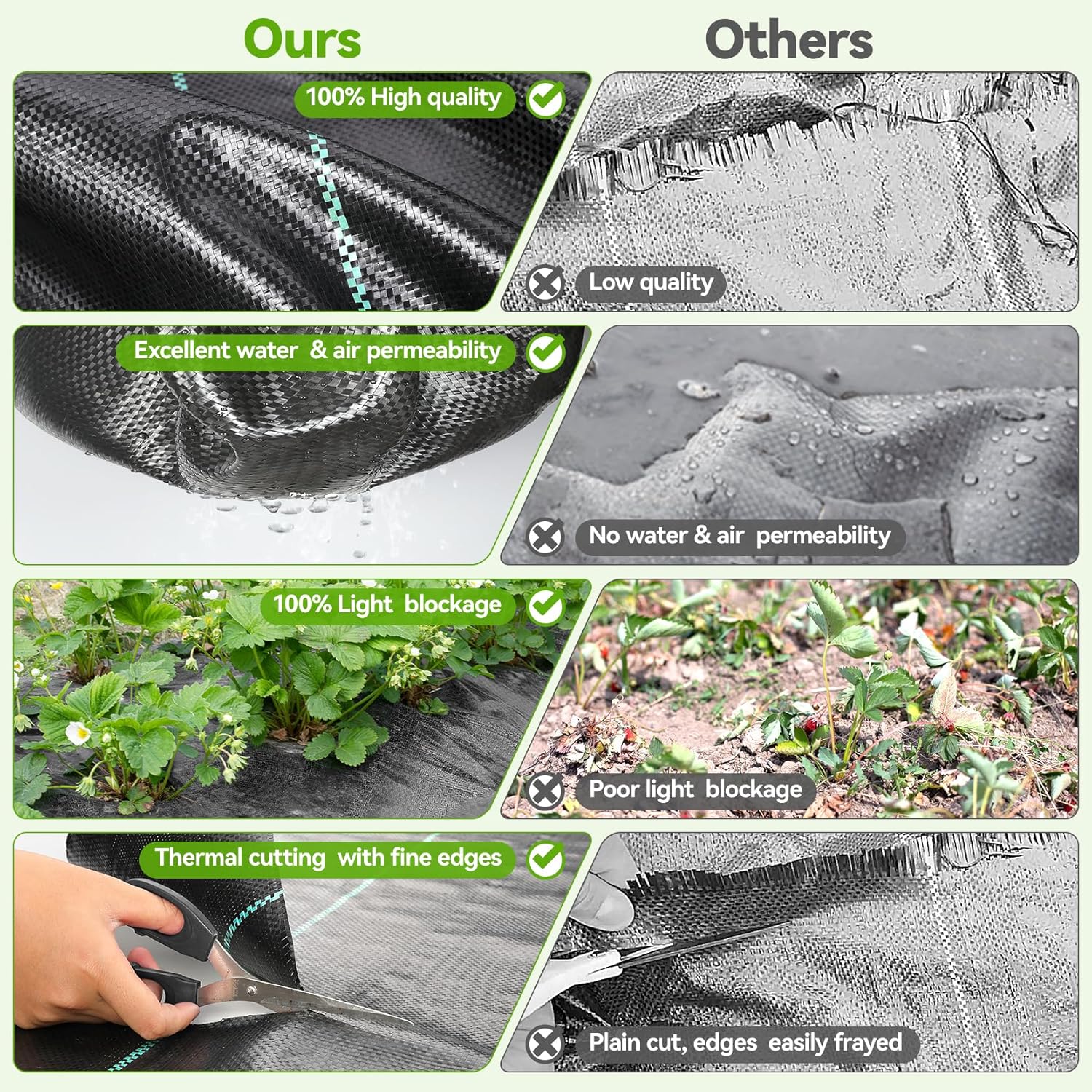 - [ Water and Air Permeable ] - iropro woven weed barrier landscape fabric allow air and water to reach the soil, keep the soil moisture and healthy. After laying down our weed control fabric, plants can still get nutrients but without the interference of weeds, so they can grow better. You can save more time and energy to concentrate on gardening and landscaping.