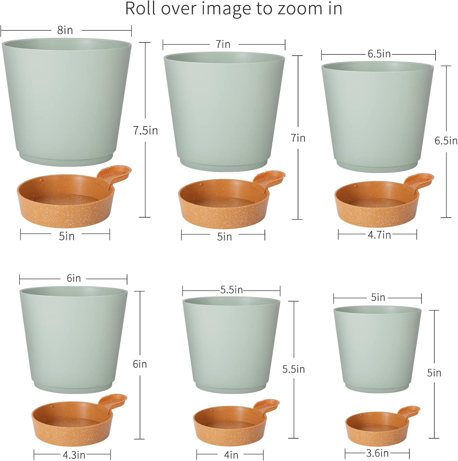 GARDIFE Plant Pots 8/7/6.5/6/5.5/5 Inch Self Watering Planters with Drainage Hole, Plastic Flower Pots, Nursery Planting Pot for All House Plants, African Violet, Flowers, and Cactus,Green