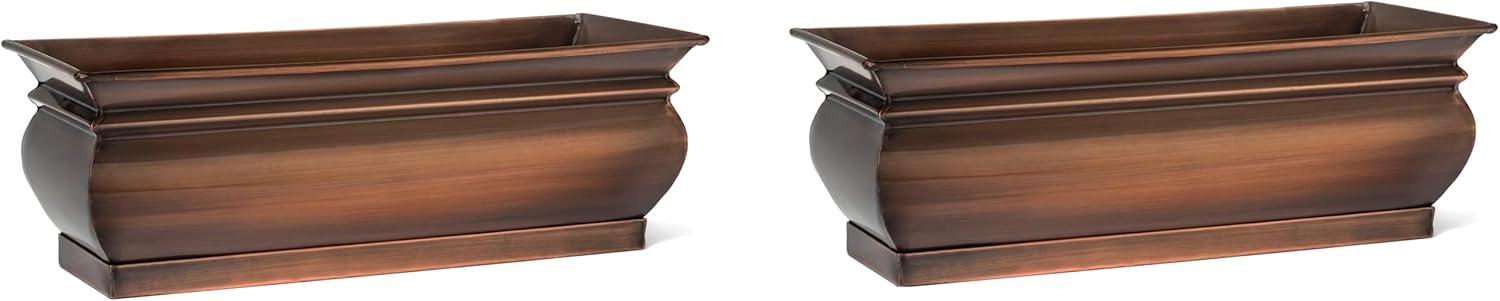 - Handcrafted home decor accent – Stainless steel rectangular succulent planter box with an antique copper hand-applied finish for luxurious appeal. This indoor planter box is current with a timeless feel. Use indoors as an herb or succulent planter on a windowsill to connect with the outdoors or place outdoors on your patio, deck, or tabletop. Complete with custom rectangular drainage tray, this home décor accent is designed to add character to your living space. No plants included.