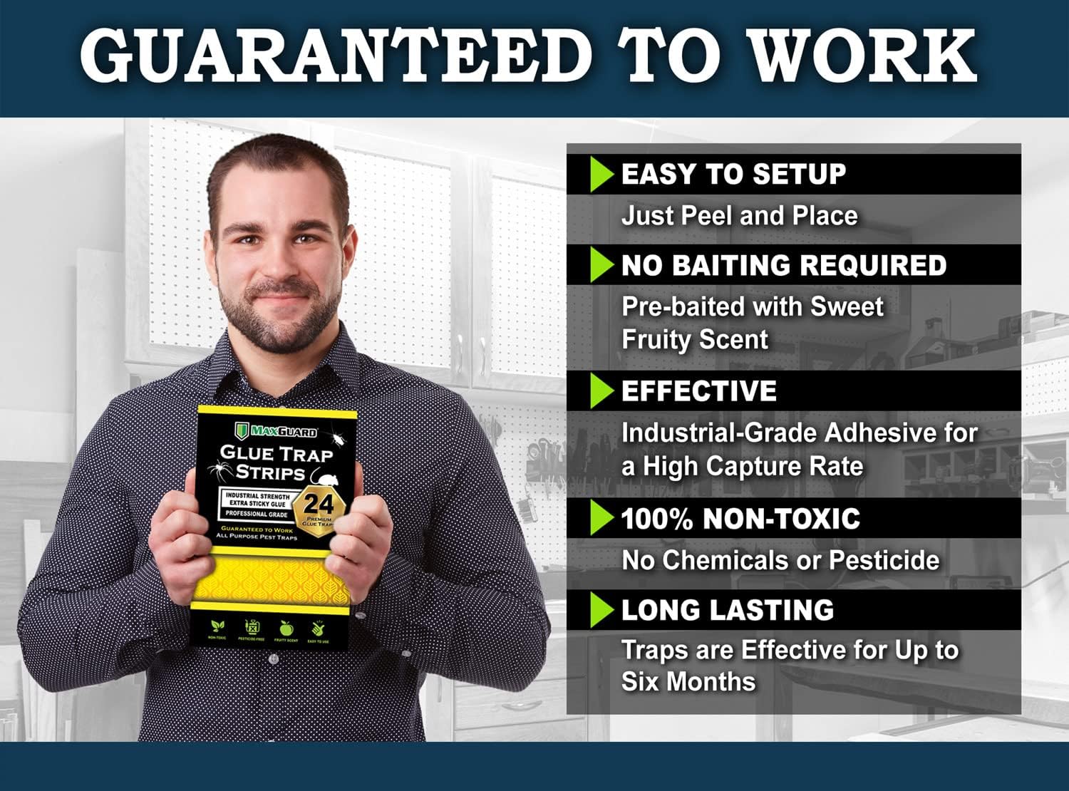 - β WHAT YOU GET: Each box comes with 24 pre-baited glue trap strips that are guaranteed to work.