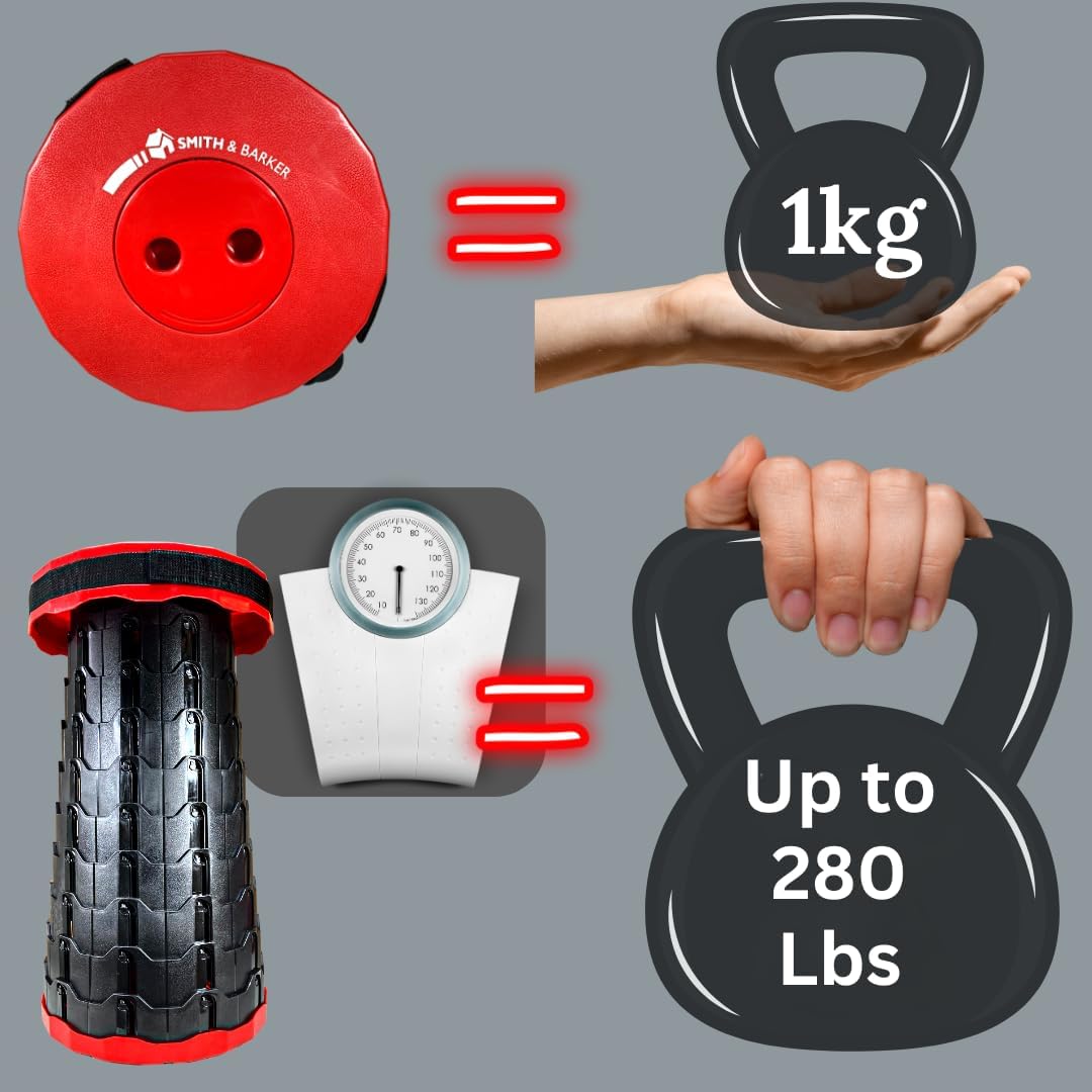 - LIGHTWEIGHT: Weighing the same as a bag of sugar and and measuring only 6cm x 25cm when retracted, our stool is very easy to transport wherever you might need it for on-the-go seating