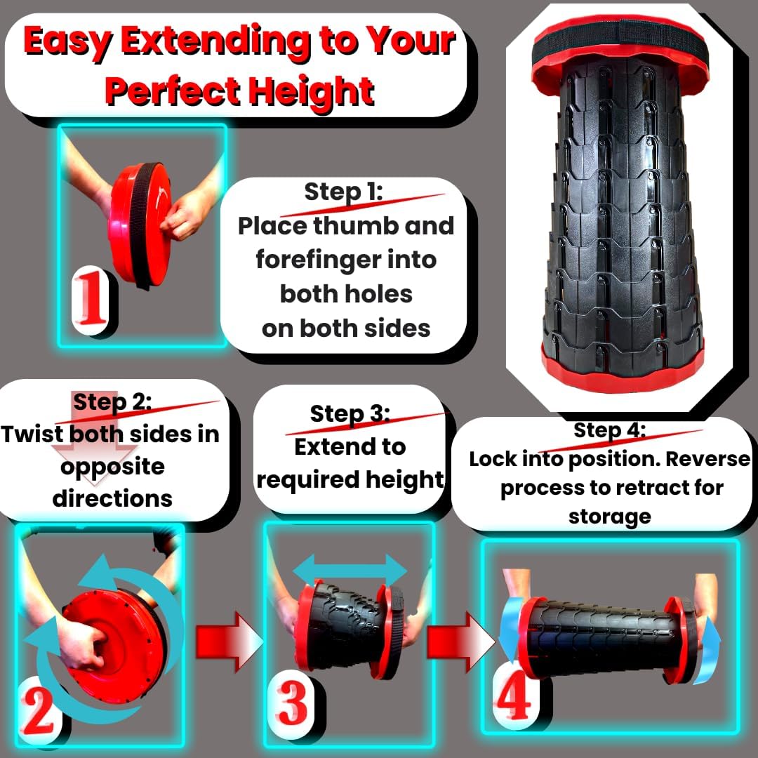 Smith & Barker Upgraded for 2025 Premium Telescopic Folding Stool for Adults and Children Outdoor Indoor Portable Collapsible Foldable Fishing Hiking Camping Festivals Seat (Red)