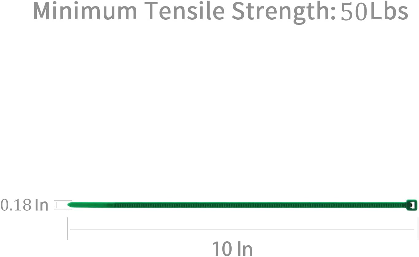 XINGO 100PCS Cable Zip Ties Heavy Duty, Premium Nylon Plastic Wire Ties with 50 Pounds Tensile Strength, Self-Locking Black Nylon Zip Ties for Indoor and Outdoor (10 inch, Dark Green)
