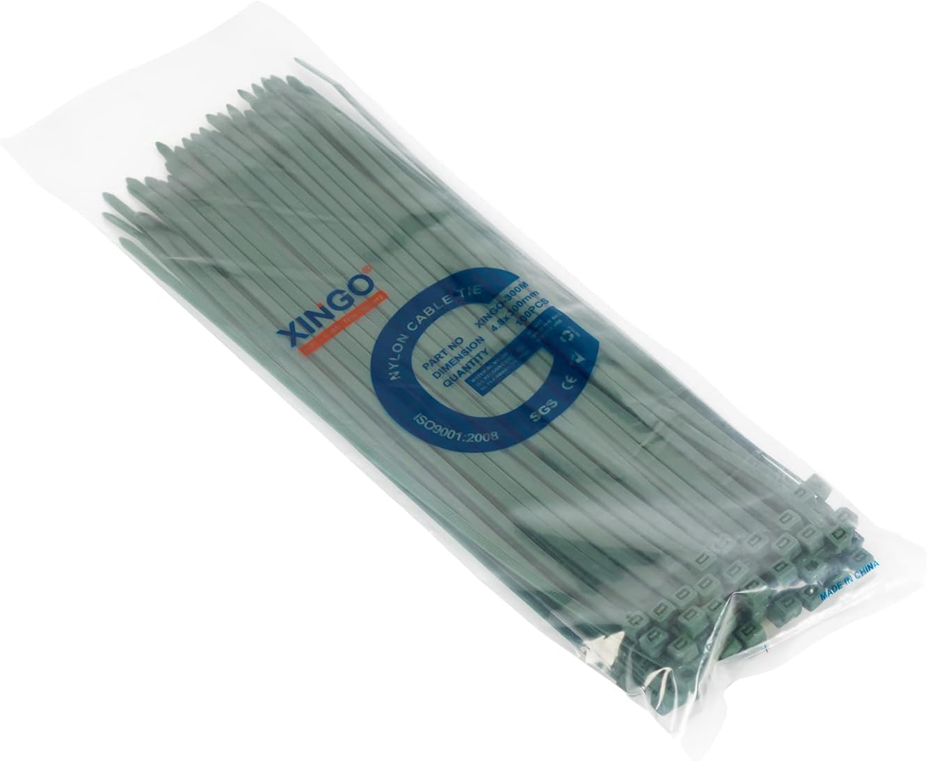 XINGO 100PCS Cable Zip Ties Heavy Duty, Premium Nylon Plastic Wire Ties with 50 Pounds Tensile Strength, Self-Locking Black Nylon Zip Ties for Indoor and Outdoor (12 inch, Dark Green)