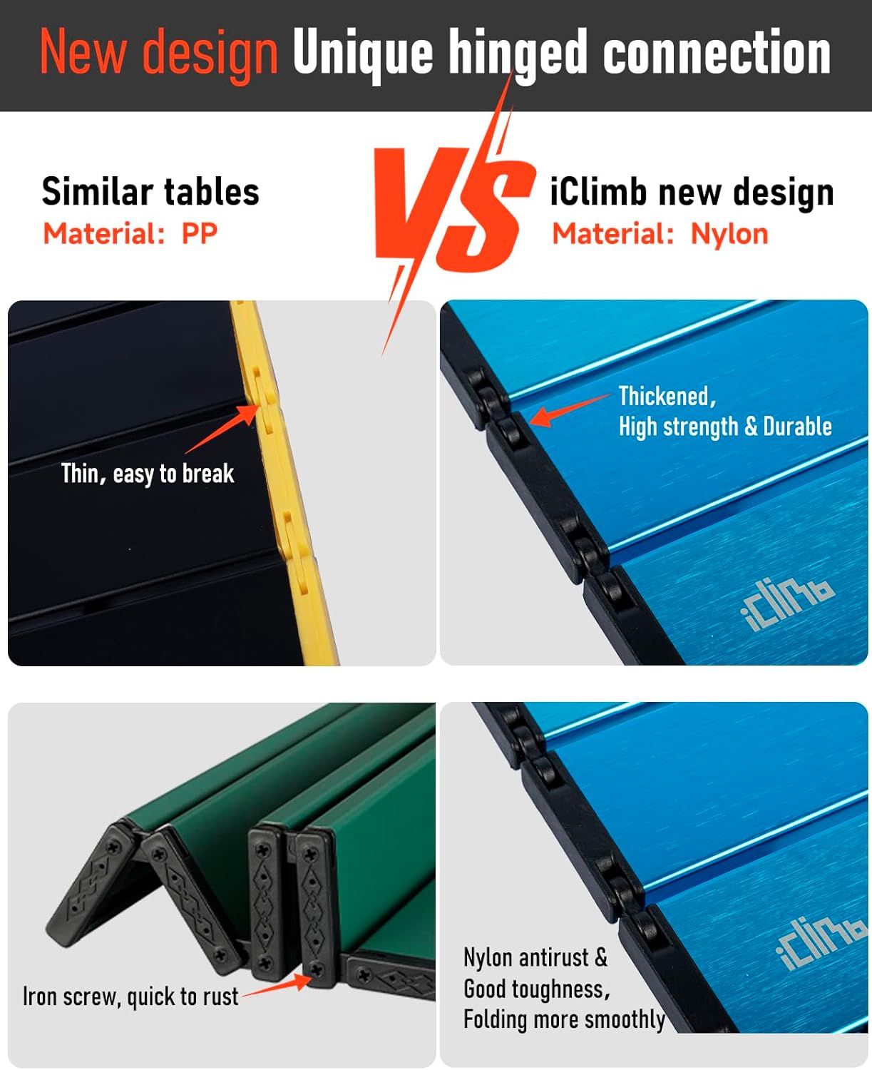 iClimb Ultralight Compact Camping Folding Table with Carry Bag (Blue - L)