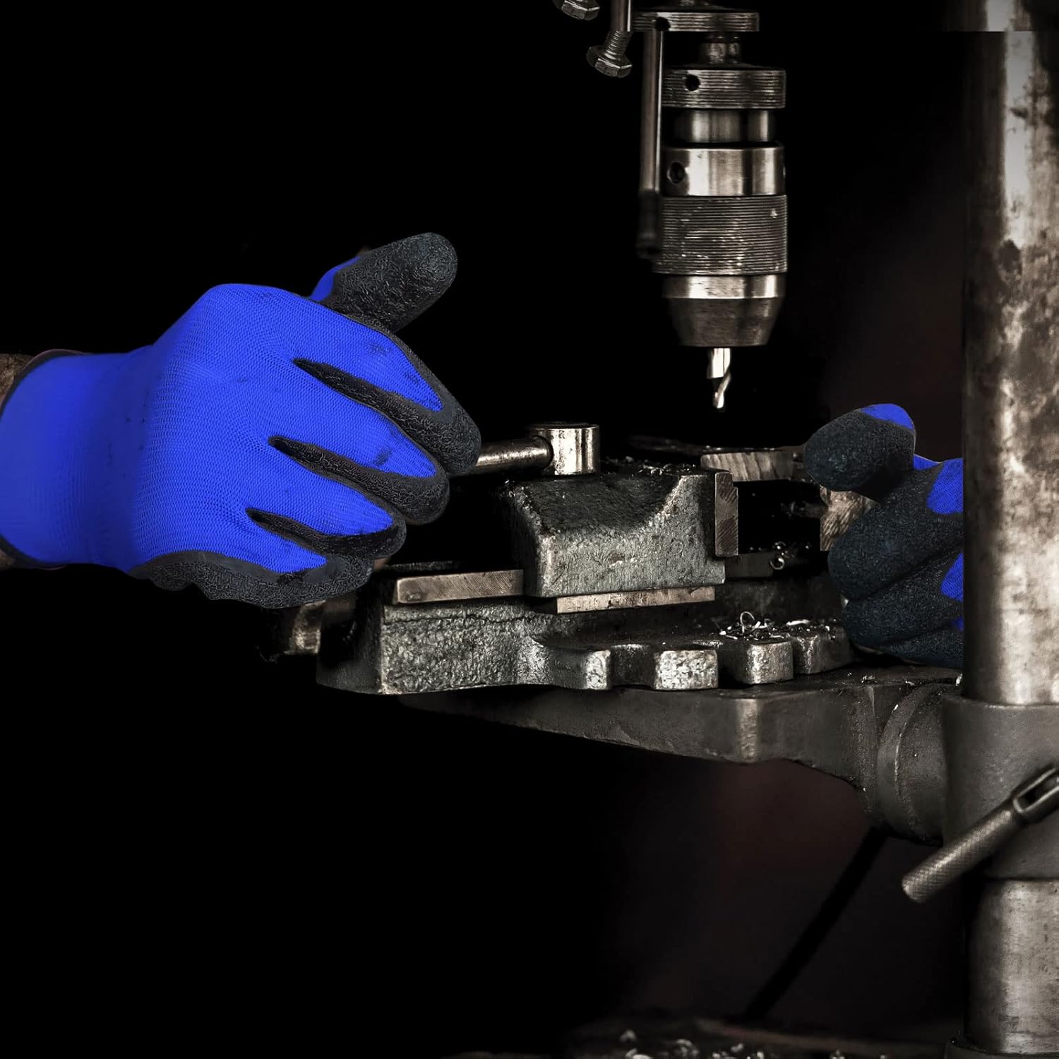 Evridwear Crinkle Latex Rubber Hand Coated Safety Work Gloves for Men Women General Multi Use Construction Warehouse Gardening Assembly Landscaping (Medium,Blue- 12Pair)