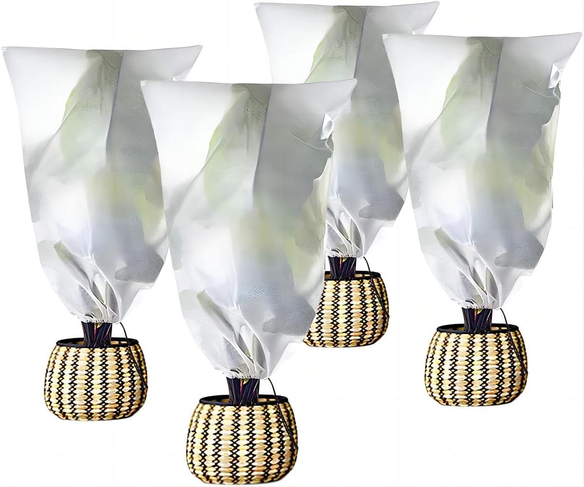 Agfabric Plant Covers Freeze Protection H30 xW60 0.9oz Plant Frost Protection Covers Drawstring Bags Winter Frost Pests Protection,White,4 Pack