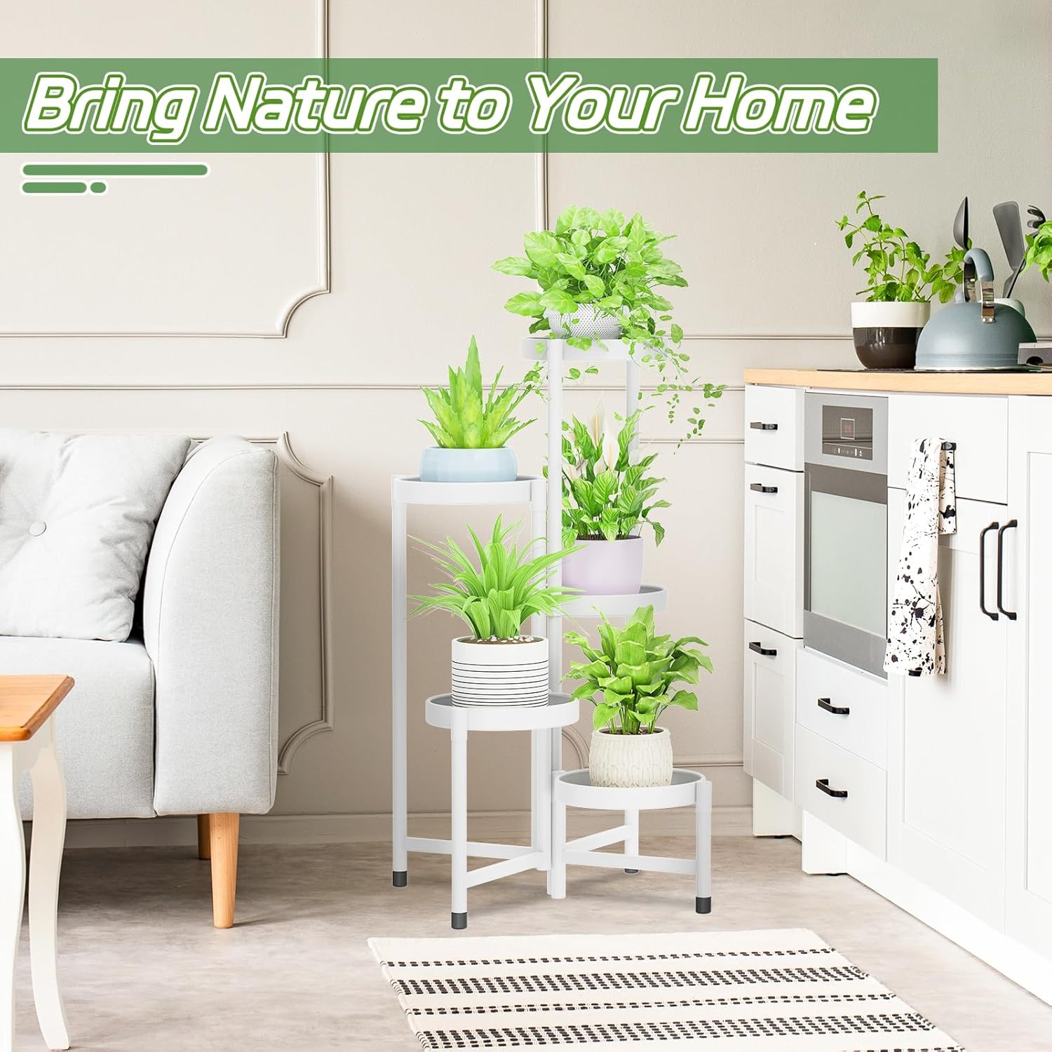 iDavosic.ly Plant Stand Indoor Outdoor, 5 Tier Corner Metal Flower Display Holder Shelf, Folding Tall Orchid Rack for Patio Balcony Porch Garden Living Room House, White