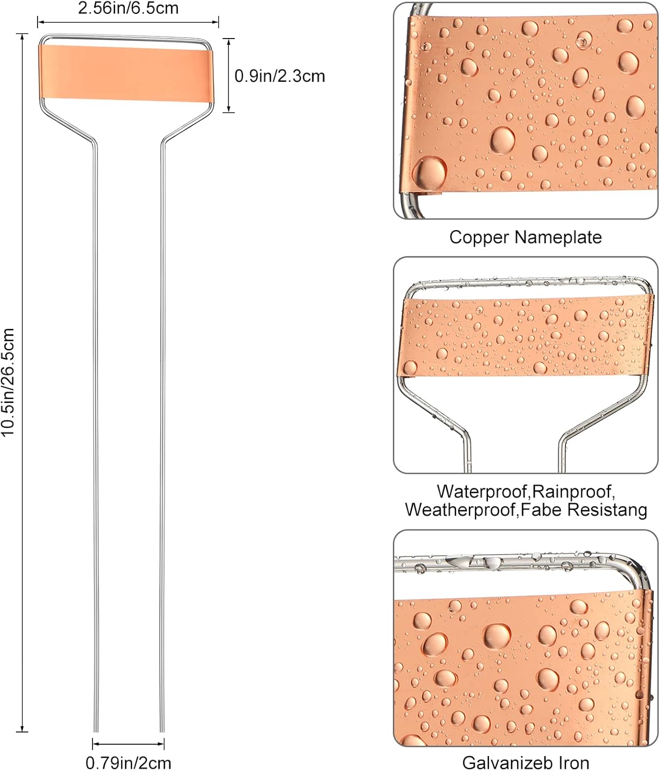 - Reliable Material to Use: the plant tags are mainly made of copper and stainless steel, strong and reliable, not easy to fade or deform, with smooth surface, you can write the names on it, then insert it into the soil or flowerpot; The 2 foot design makes it stand steady, easy to insert into the soil and place in different corners easily