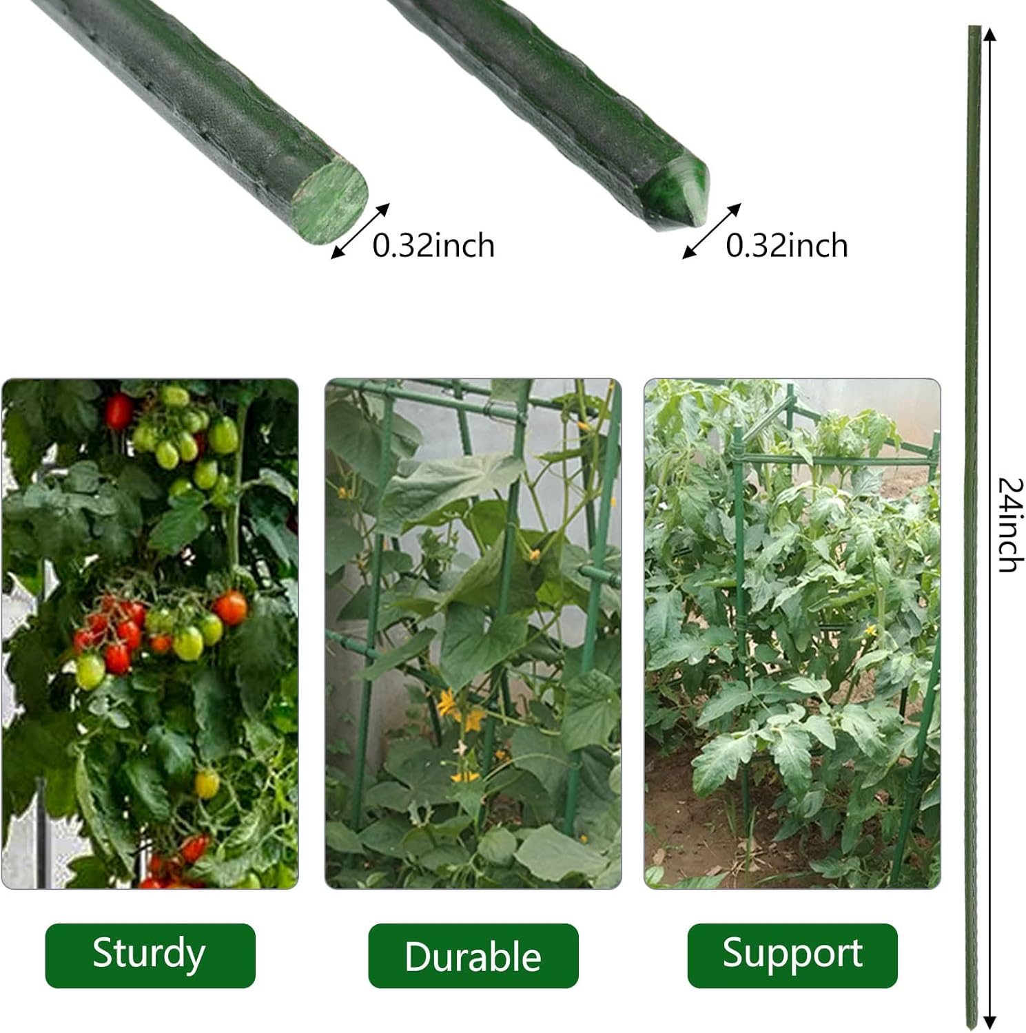 Garden Plant Stakes 24 Inch 2Ft Steel Plant Stick Support, 25 Pack Tomato Stakes for Growing Climbing Plants