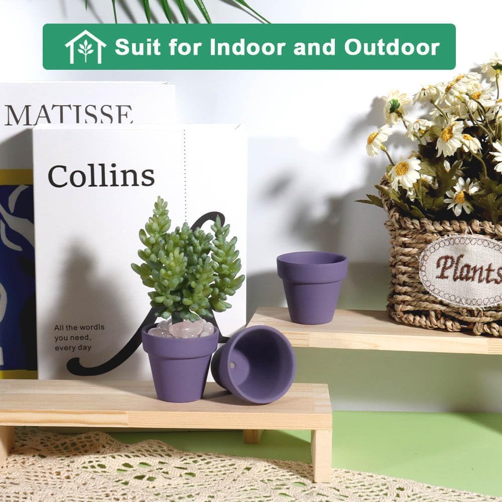 vensovo 48 Pcs 2" Tiny Terracotta & Terra Cotta Pots with Drainage - Purple Small Mini Clay Ceramic Pottery Planter Ideal for Indoor/Outdoor Plants, Crafts, Wedding Favors