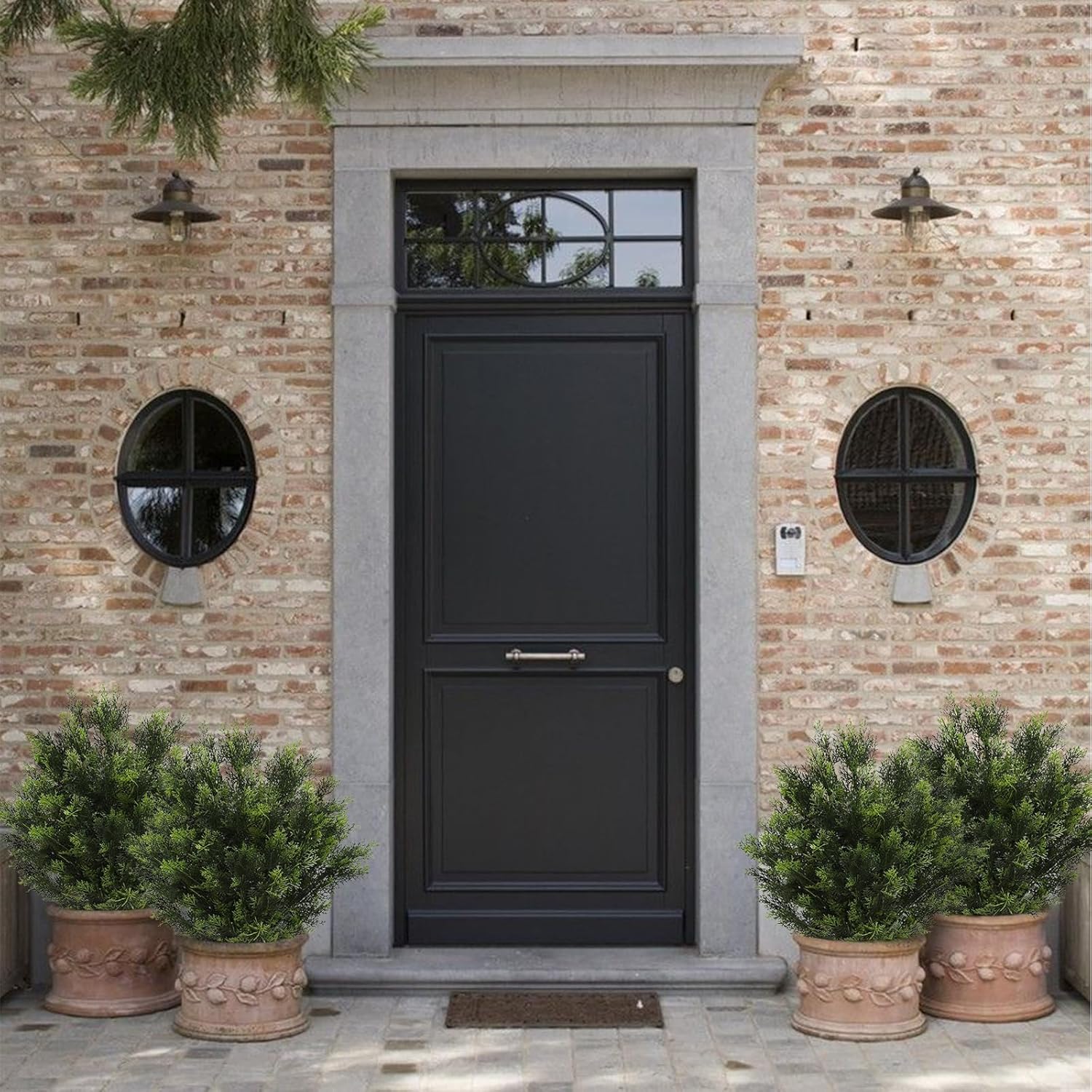 - Realistic Looking:This artificial cedar plant is covered with lifelike cypress crafted from plastic. which make you get close to nature. And it doesn't have weird plastic smell