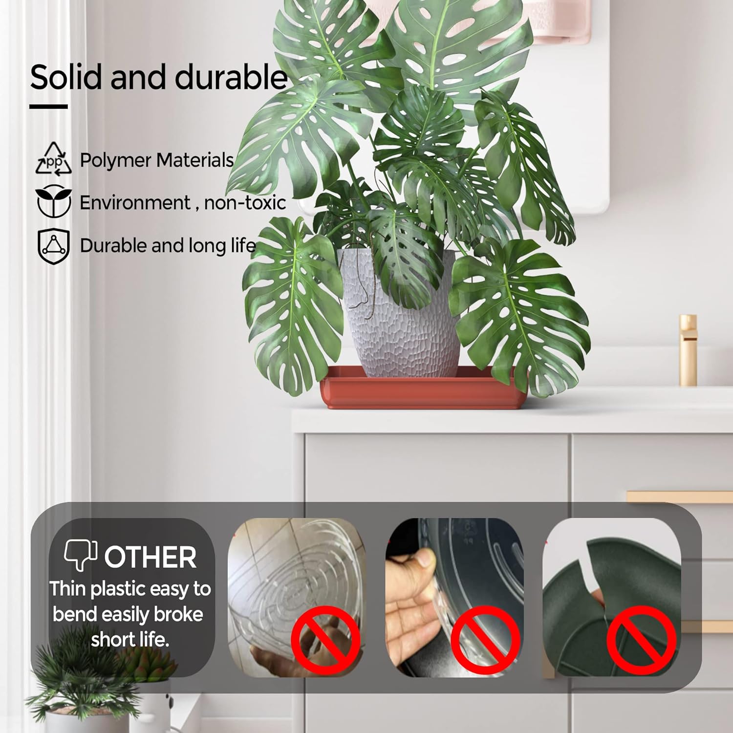 WAYNHUI Squared Plant Saucer 6/8/10/12/14/16/18Square Plastic Basin Tray Large/Small Water Receiving Tray (Red 12inch 5 Pack)