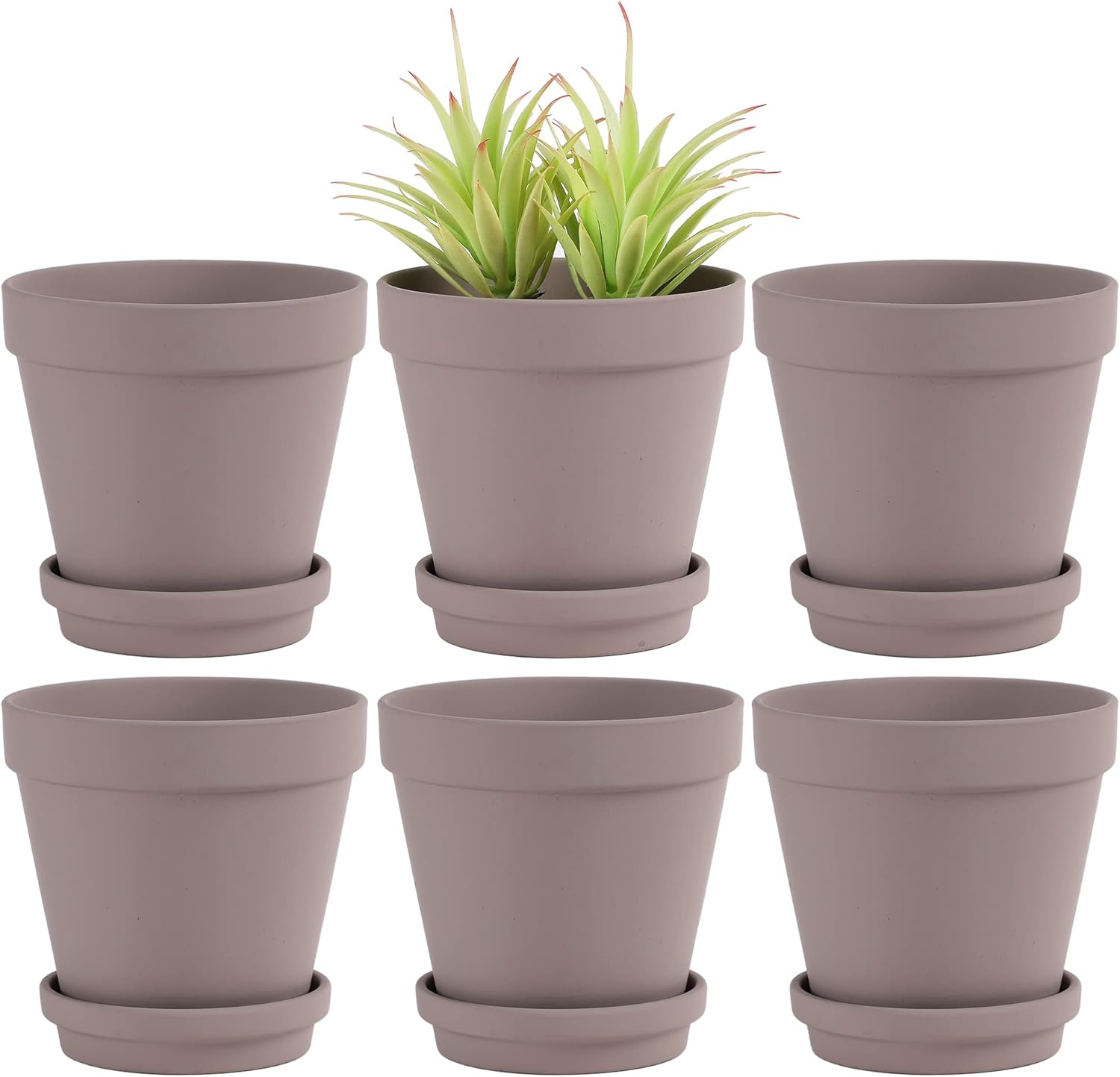 Yishang Large Terra Cotta Pots with Saucer- 6 Pack Large 6'' Terra Cotta Plant Pot with Drainage Hole, Flower Pot with Tray, Terracotta Pot for Indoor Outdoor Plant(Grey)