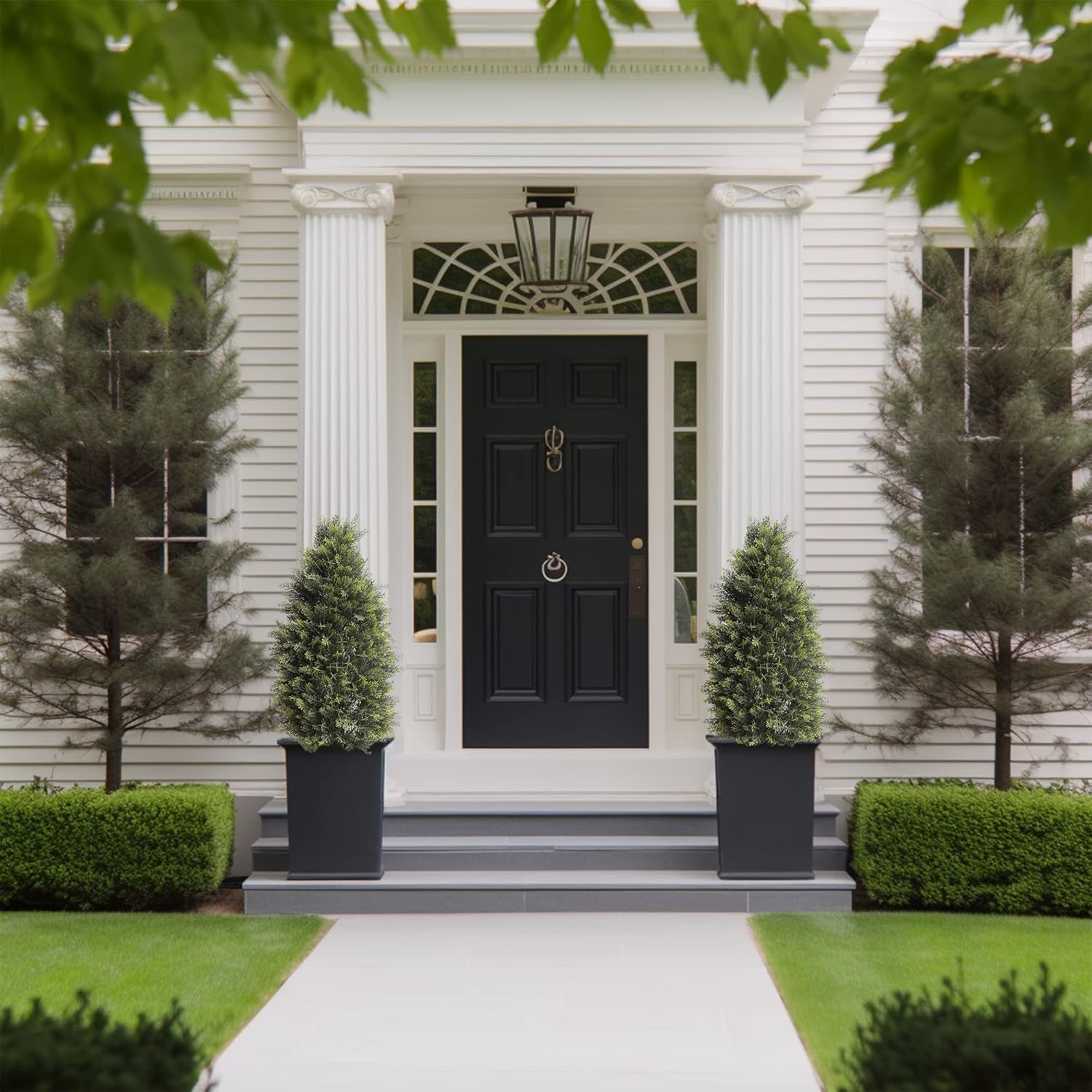 - [Easy to Install]: Faux Shrub with a sturdy base included, setting up this front porch decor is a breeze. Simply place it in your desired location and enjoy the instant transformation it brings. Perfect for front yard, along a walkway or driveway to add life and natural energy to any room