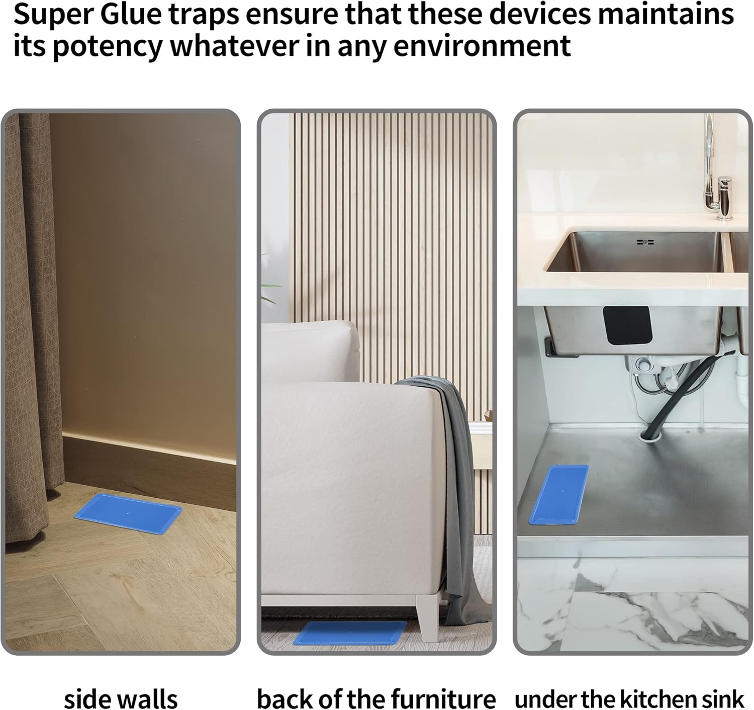 - Where to Place: We suggest you position sticky traps along active rodent runways, such as along walls, under large kitchen appliances, in cupboards, and other areas where rodents travel. Be sure to fit the glue trap flush against a wall where rodents will run over and stick to it.