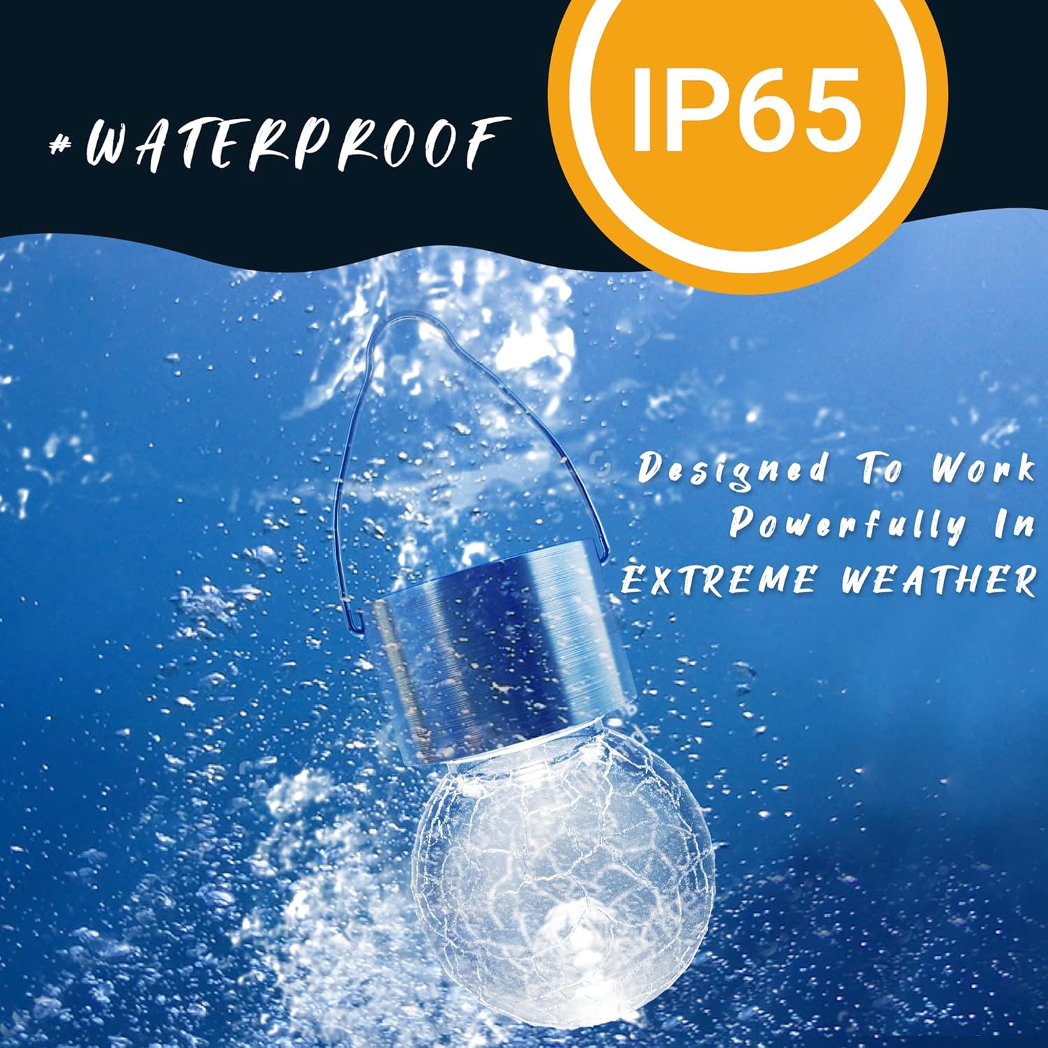 - 【Premium Material】Featuring a shimmering crackle glass globe, a sturdy stainless-steel hook and newest upgrade solar panel, solar hanging lights add a superior light effect to your garden