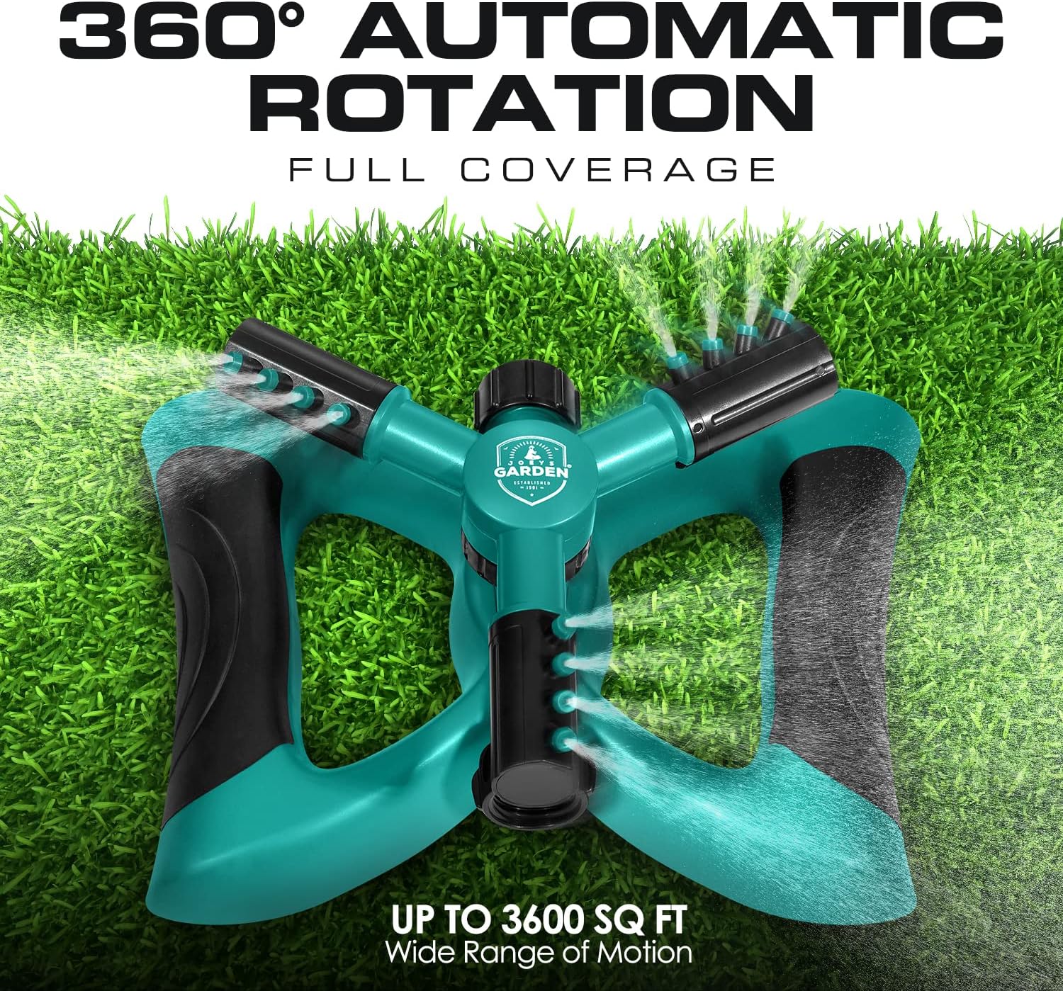 Joeys Sprinkler for Yard, Rotating Garden Sprinkler for Large Area Coverage, Lawn and Yard Sprinklers (Green)
