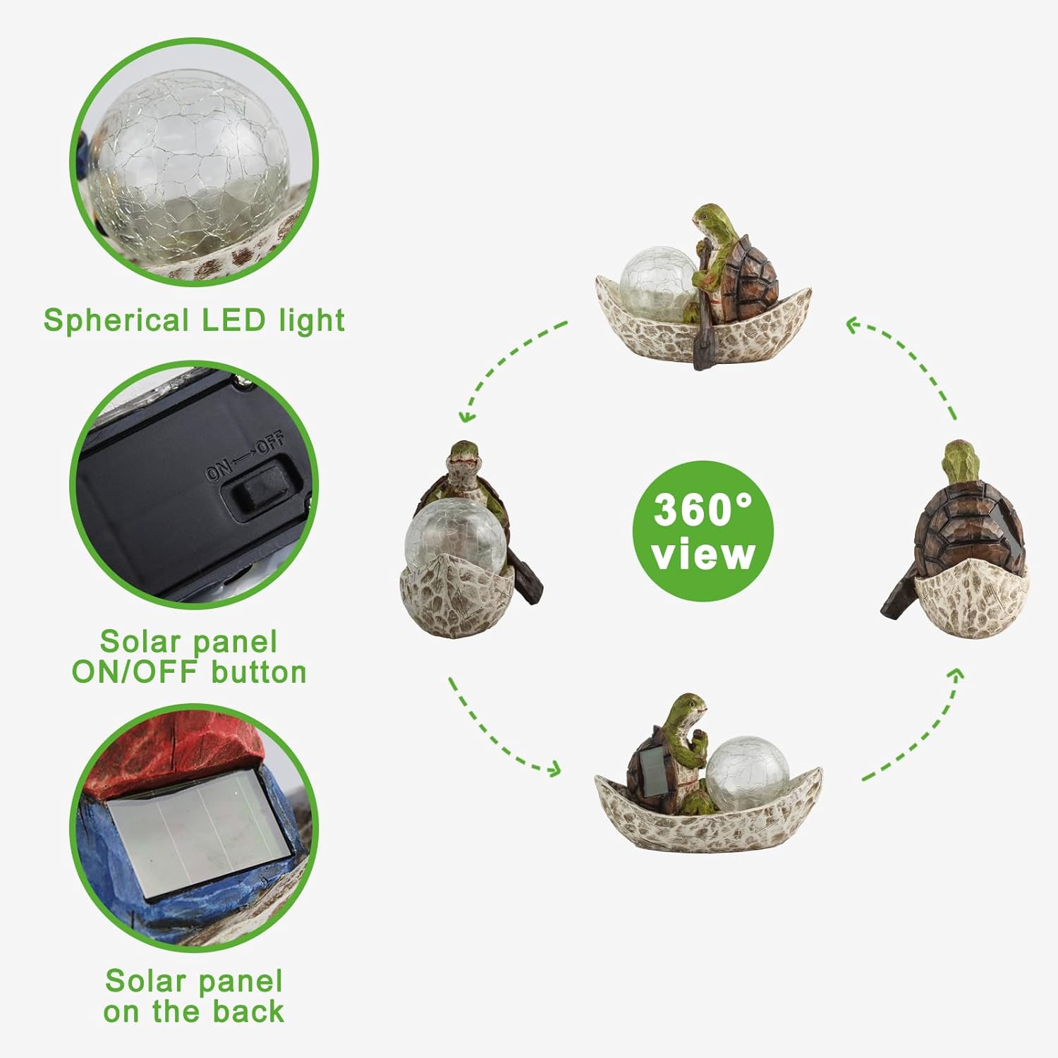 - 【Cute Tortoise Decoration】The garden tortoise statue of rowing who has a modern look and colorful paint.Solar tortoise figurine acts as a wonderful addition to brighten up your garden.Size:8.58*4.8*5.51