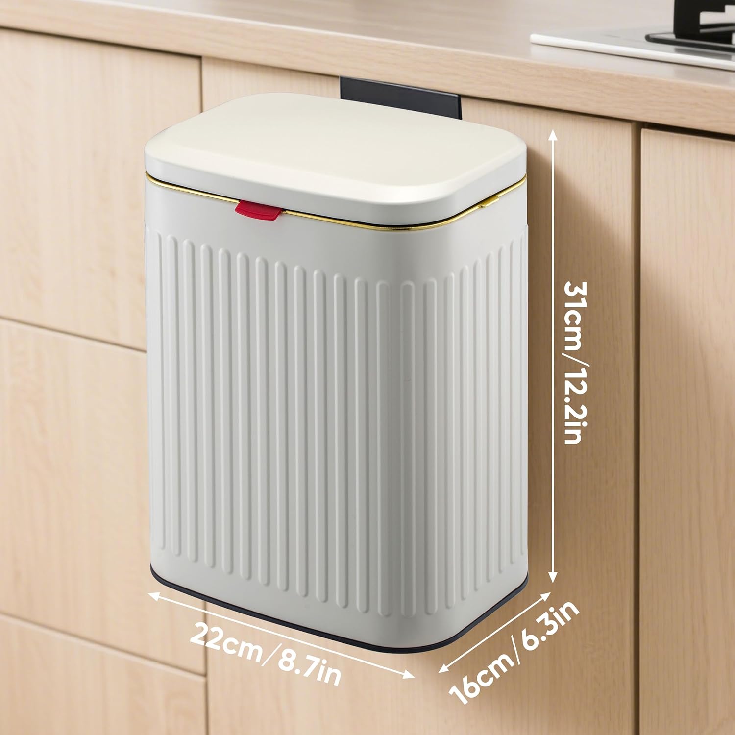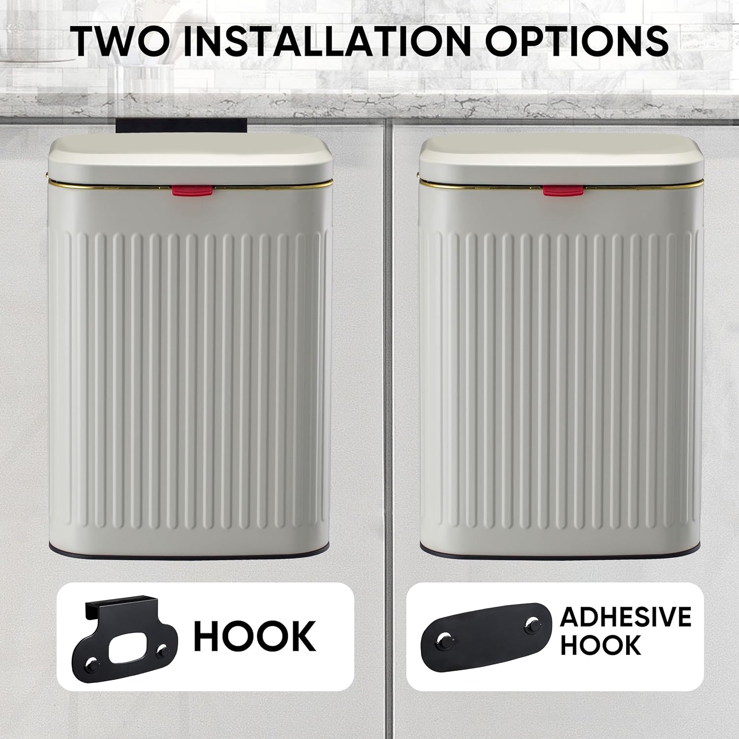 2.11Gallon 8L Carbon Steel Trash Can Door Compost Bin Wall Mounted 2 Ways Sliding Lid Compost Bin Countertop Kitchen Hanging Cabinet Door Trash Bin Metal Garbage Bin Cubo de Basura Ivory