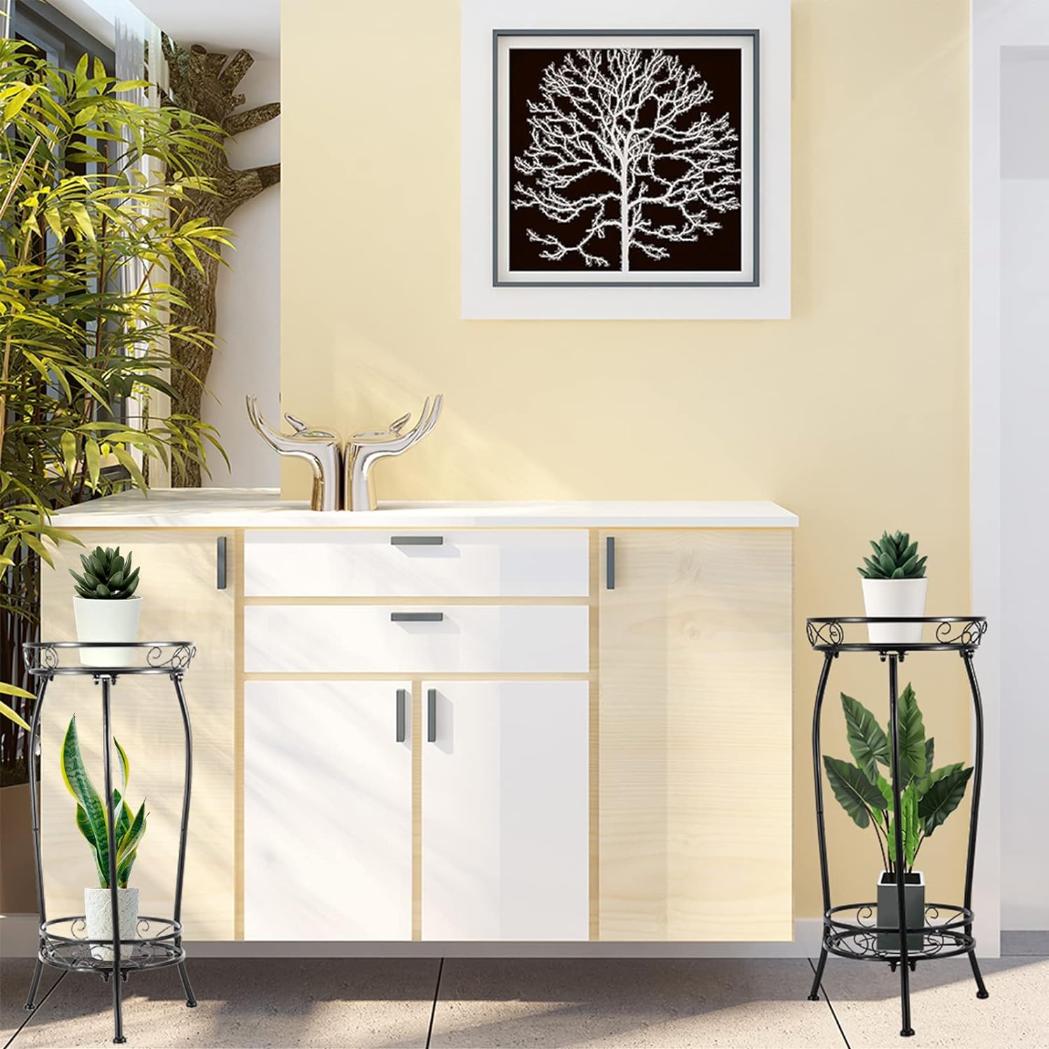 - Outdoor Indoor Metal Plant Stand - This plant holder can be used indoor and outdoor and makes a seamless addition to most modern, contemporary and farmhouse-style homes.A great decoration for flower shops, home, gardens, balconies, or patios.