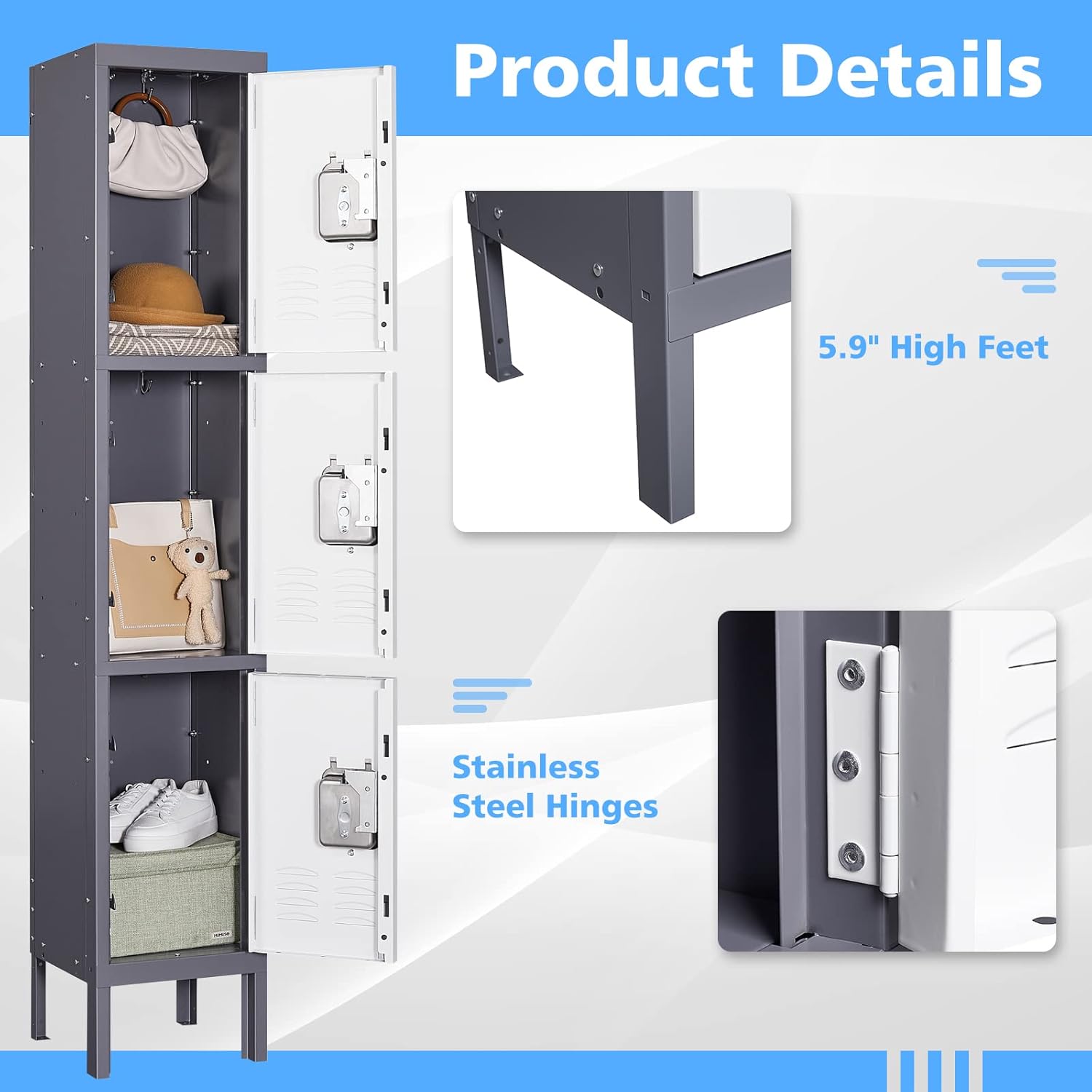 Letaya Storage Locker,66" Employees Metal Cabinet 3 Door Lockable for School Gym Home Office Staff