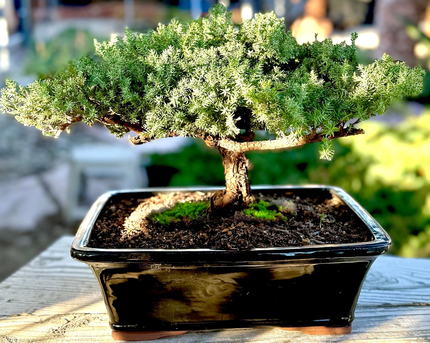 - Above 10 years old Nana junipre tree .100% Home-Grew.We used all glazed ceramic pot and comes with a great real bamboo stand for free.