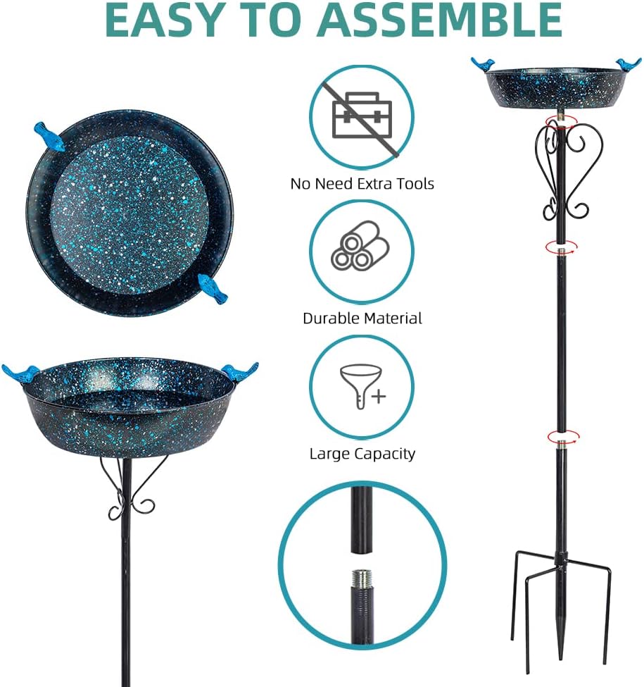 - 【Easy Installation】Metal bird bath is easy to assemble, no need tools just screw all parts together. Not recommended to be placed in too soft or too wet soil.