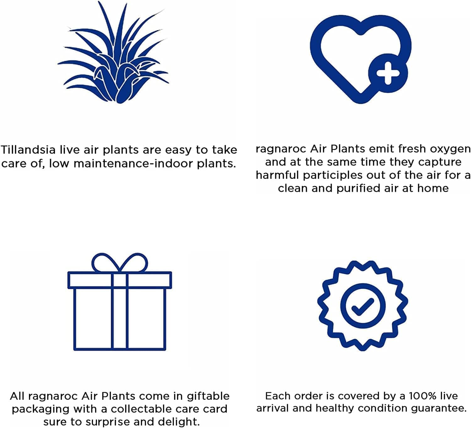- Healthy plant arrival assurance: ragnaroc is committed to delivering vibrant and thriving air plants to your doorstep. Our live air plants are packed directly from Florida, and every order comes with a promise of their safe and healthy arrival. If, for any reason, you find yourself less than satisfied with our plants, please inform us, and we will promptly arrange a full refund or send you replacement plants.